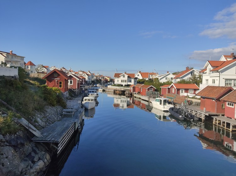 Direction ensuite le nord de l’île pour le village de Fiskebäckskill, tout aussi calme que Grundsund : les maisons de pécheurs rouge et blanche sur la mer, le petit village sur les hauteurs aux rues pavées, sans compter un très joli sentier côtier qui monte sur une falaise dominant la vue sur la mer et les multiples îles de cette côte.