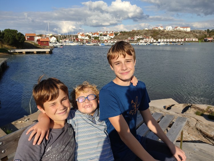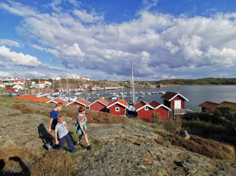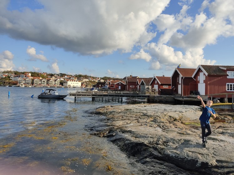 Quand les estomacs sont remplis, les enfants sont disposés pour se promener et découvrir ce joli petit village de pécheurs authentique avec leurs petites maisons sur la mer peintes en rouge (« Falun » peinture traditionnelle suédoise rouge foncé) et blanc. On n’a croisé personne à se demander si ce village était habité… si paisible !!