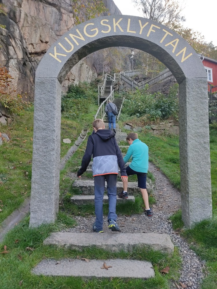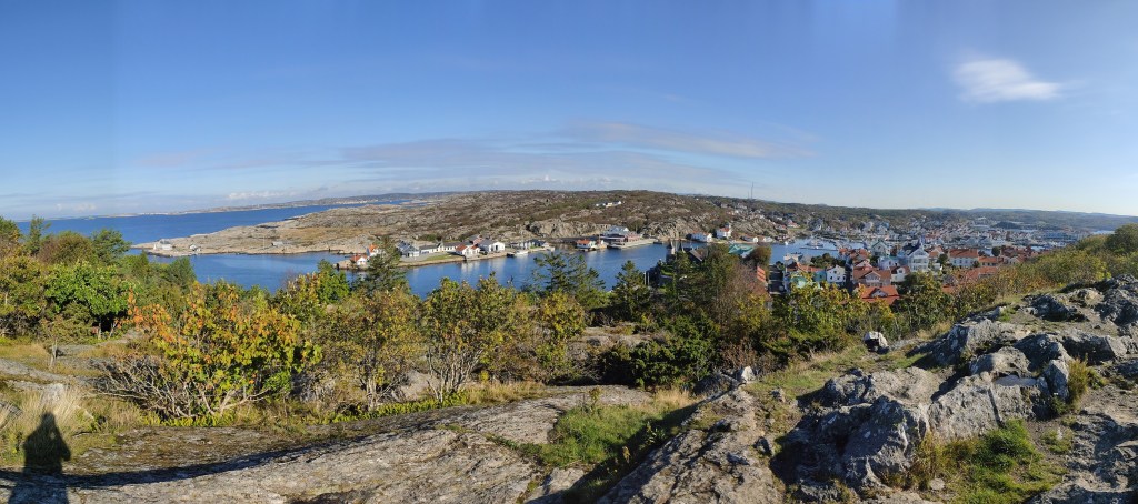 Le lendemain, nous passons la matinée sur place pour se promener dans le village. Nous montons sur la falaise de Kungsklyftan pour admirer le magnifique panorama sur le village et la côte.