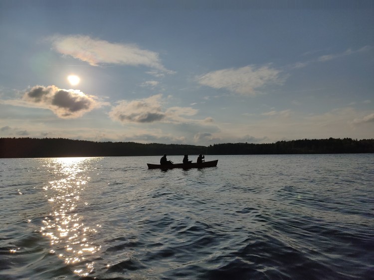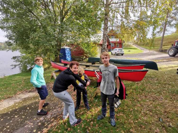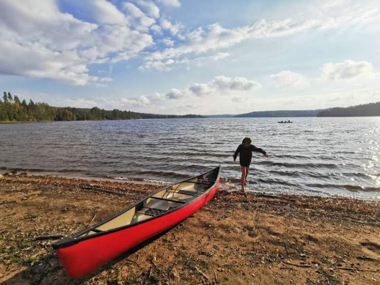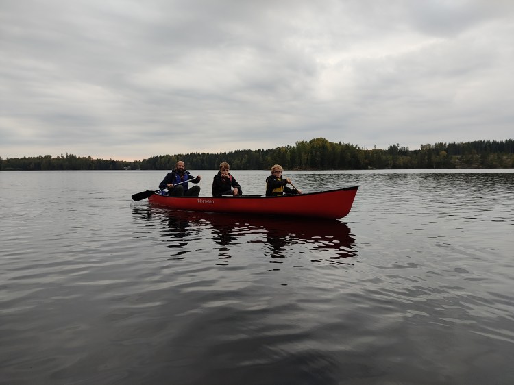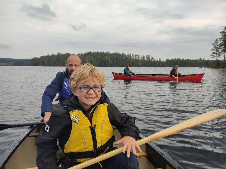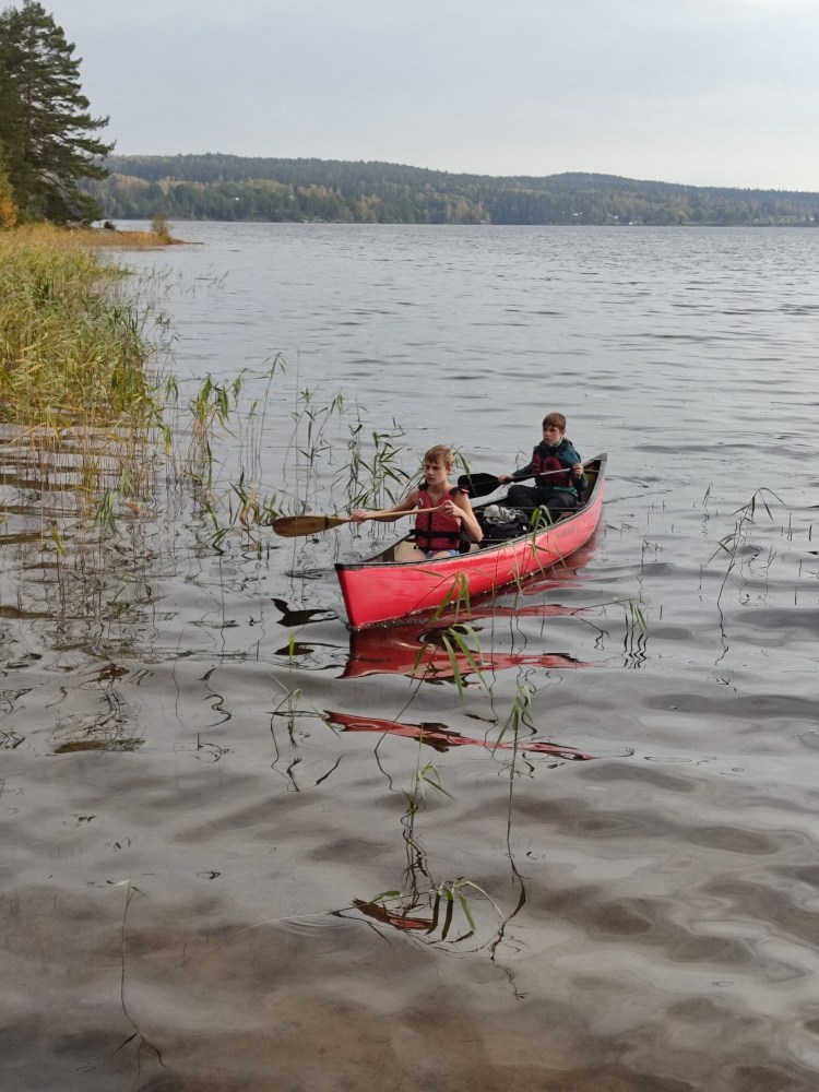 Nous coupons la route en 2. Nous nous arrêtons pour une après-midi de canoë dans le Dalsland, réputé pour ses multiples lacs reliés entre eux par des canaux. Il est possible de s’organiser des voyages d’une dizaine de jours en canoë dans cette région. Les plages et les îles ont de nombreux aménagements pour faire des feux, s’abriter, faire un campement… Les enfants étaient ravis de leur après-midi mais rincés comme nous d’ailleurs car le courant ne facilitait pas toujours la navigation. Et il faut dire que nous avons accepté qu’Hugo et Louis naviguent ensemble. Le problème c’est qu’ils ne savaient pas ramer droit… Nous avons fait 12km, Hugo et Louis ont bien dû en faire 15km avec leur zig-zag ! 🙂
