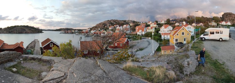 Nous rejoignons pour la nuit le village de Fjällbacka. Ce village est connu en Suède grâce à 2 célébrités Ingrid Bergman qui venait très souvent passer ses vacances dans ce village, et l’auteure suédoise Camilla Lackberg dont les intrigues policières se passent dans ce village. Nous trouvons un spot magnifique avec vue plongeante sur le village.