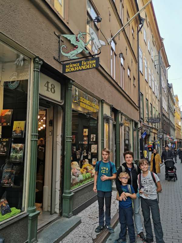 Nous visitons la vieille ville, riche en commerces, dur dur de ne pas céder. En 2 magasins, nous dépassons déjà notre budget journalier : on a craqué sur une magnifique librairie sur le fantasy et ses dérivés (à la fois librairie, jeux de société, dérivés des films Harry Potter…) et sur un magasin viking…