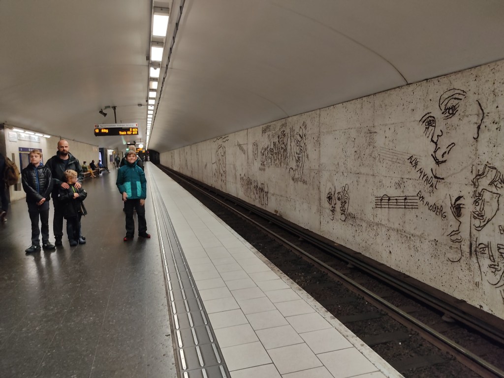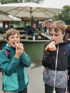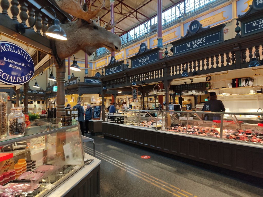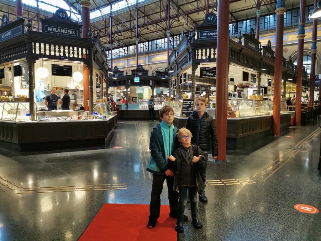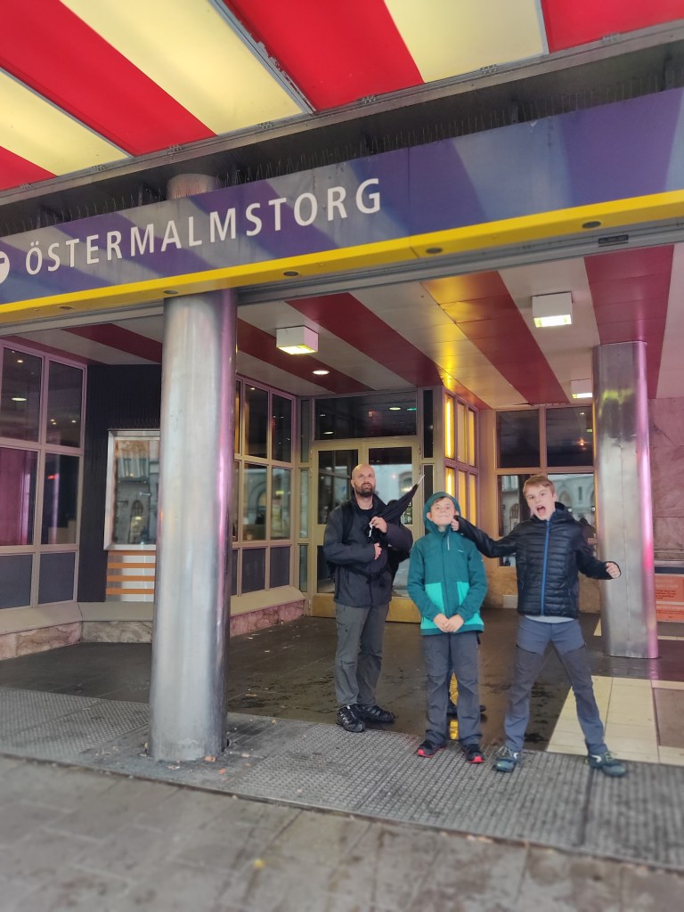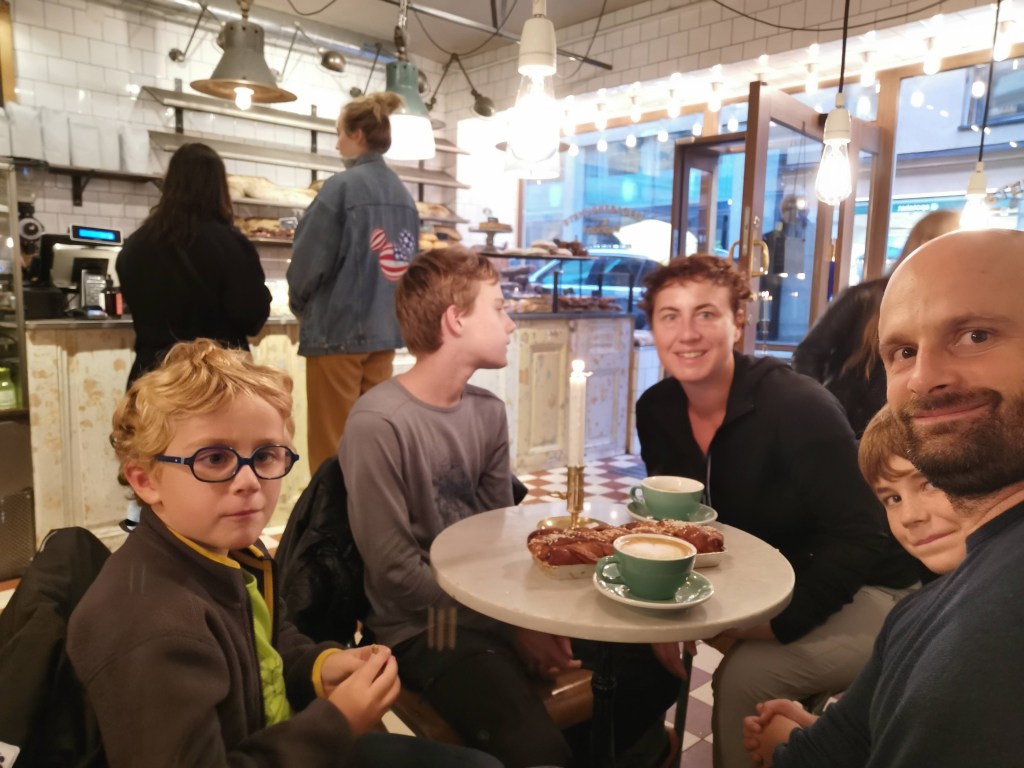 Nous reprenons ensuite la direction des quartiers chics pour découvrir les grandes rues aux belles enseignes. Nous visitons les halles, du même standing que les halles Paul Bocuse chez nous. Puis nous nous arrêtons pour une pause fika (la pause café suédoise) dans une boulangerie spécialiste des « Kanebulle » (brioche roulée à la cannelle). Nous marchons encore un peu jusqu’au métro (avec nos 3 gnomes, à voir les portraits) puis de retour au camping.