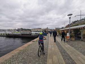 Le lendemain, Stockhölm nous voilà ! et comme le temps est de la partie, nous décidons de nous y rendre à vélo : 45min selon Google Maps, mais plutôt 1h15 avec un petit Malo.