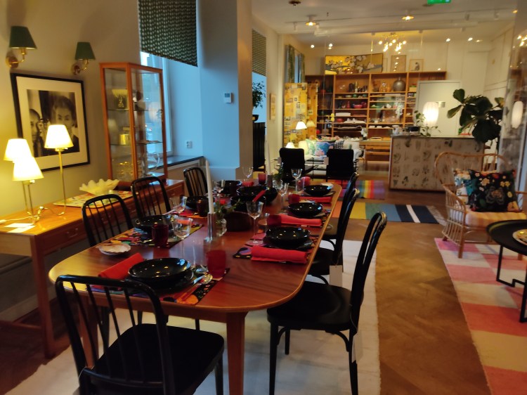 Après le musée, nous décidons de faire plus en détails le quartier Östermalm. Nous faisons une halte dans la boutique de design la plus réputée en Suède. Les tables étaient dressées comme chez mamie Simone et comme dirait Hugo « Mamie elle fait des cairns avec les assiettes »… 🙂
