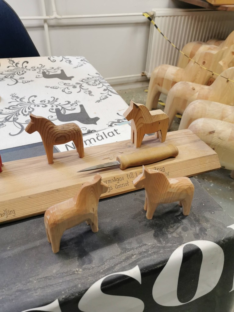 Nous nous rendons pour la nuit à Nüsnas, petit village près de Mora. Le lendemain, nous visitons sur place la fabrique du cheval de Dalécarlie, symbole de la Suède. Ce petit cheval est même offert aux personnes VIP comme Bill Clinton ou Elvis Presley… Autant vous dire que le filon est bien exploité :p