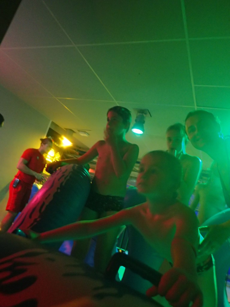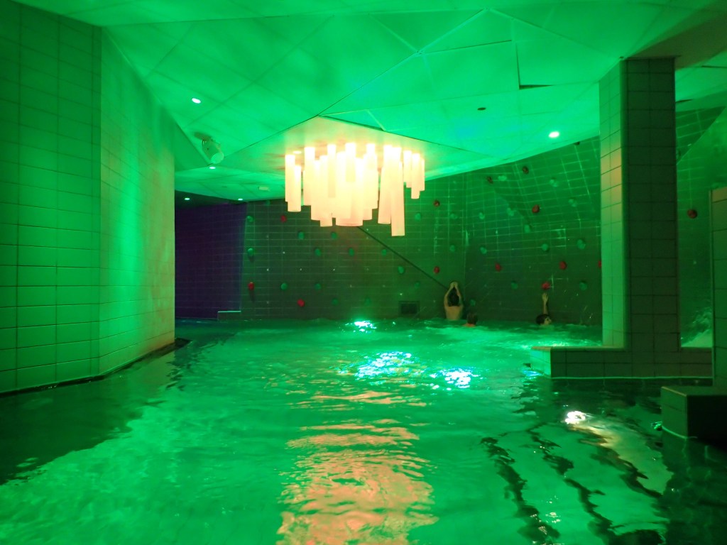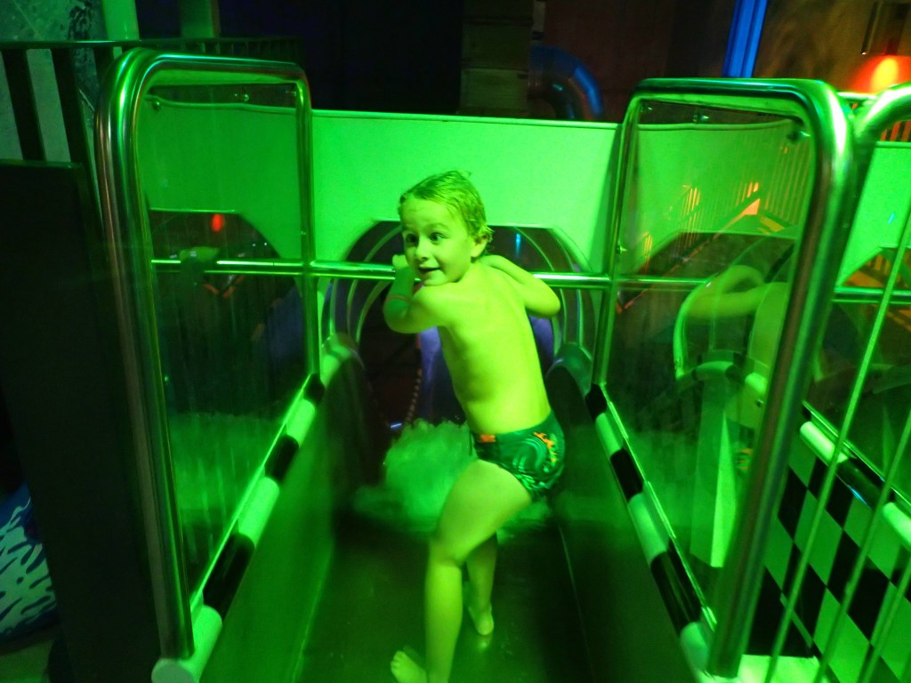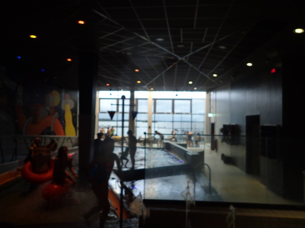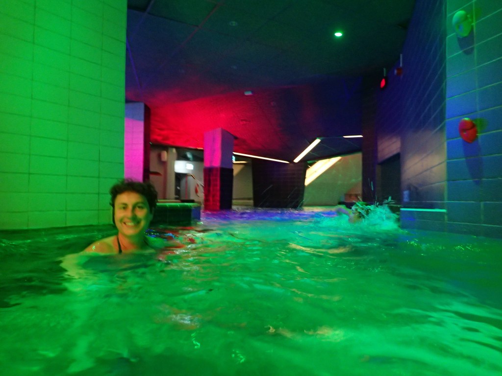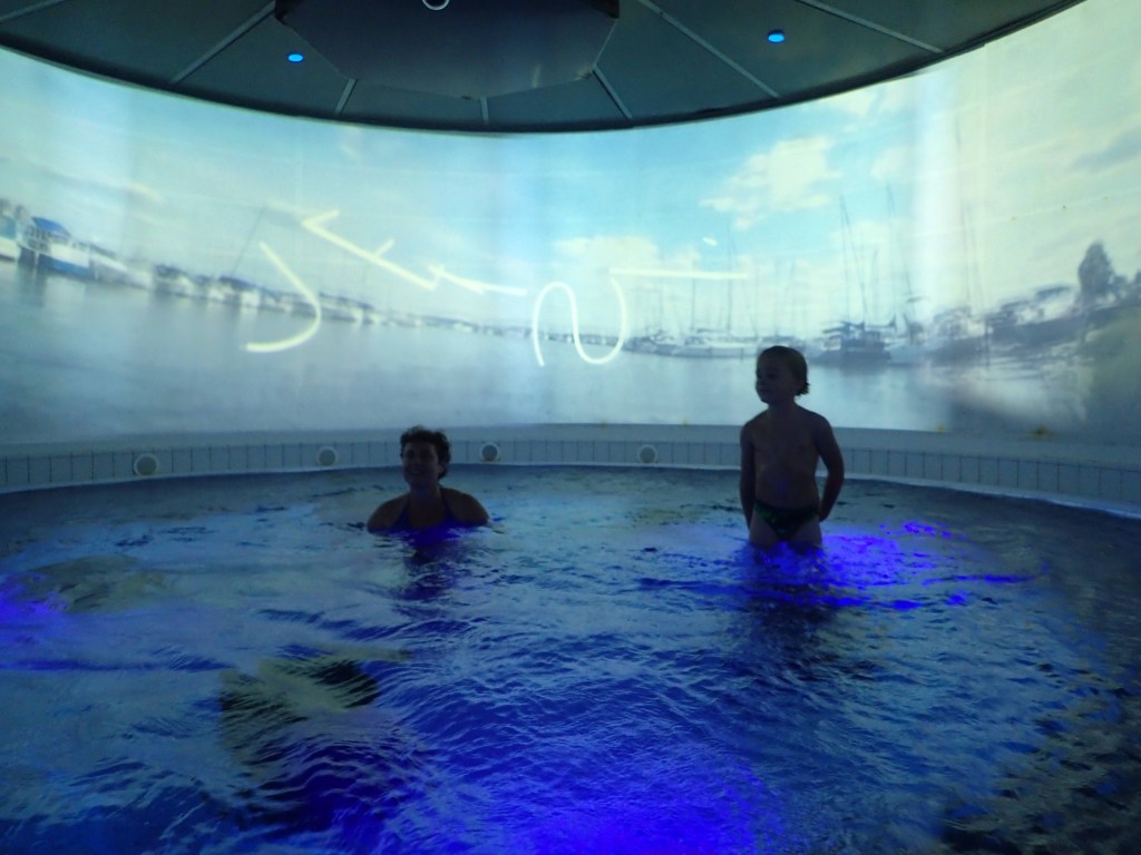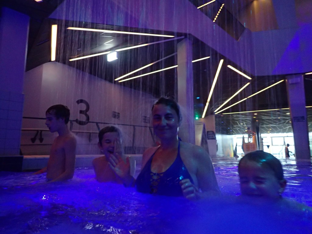 Le lendemain, nous faisons une bonne matinée d’école en attendant l’autre famille. Nous déjeunons tous ensemble pour faire plus amples connaissances. Vers 17h, nous nous rendons à ActionBad : LA surprise pour les enfants. Il s’agit d’un parc aquatique qui a été construit dans une ancienne usine en briques. On y trouve des toboggans de toutes sortes : avec bouée, en mode boomerang, dans le noir… et aussi piscine extérieure au 6ème étage avec vue surplombant le port, jacuzzi, sauna… aussi bien pour les petits que pour les grands 🙂