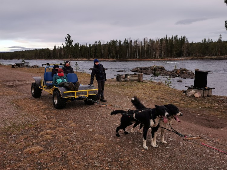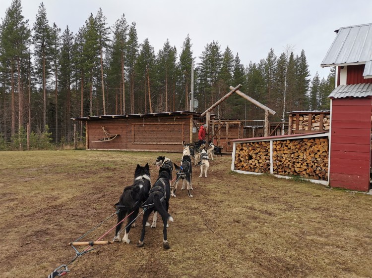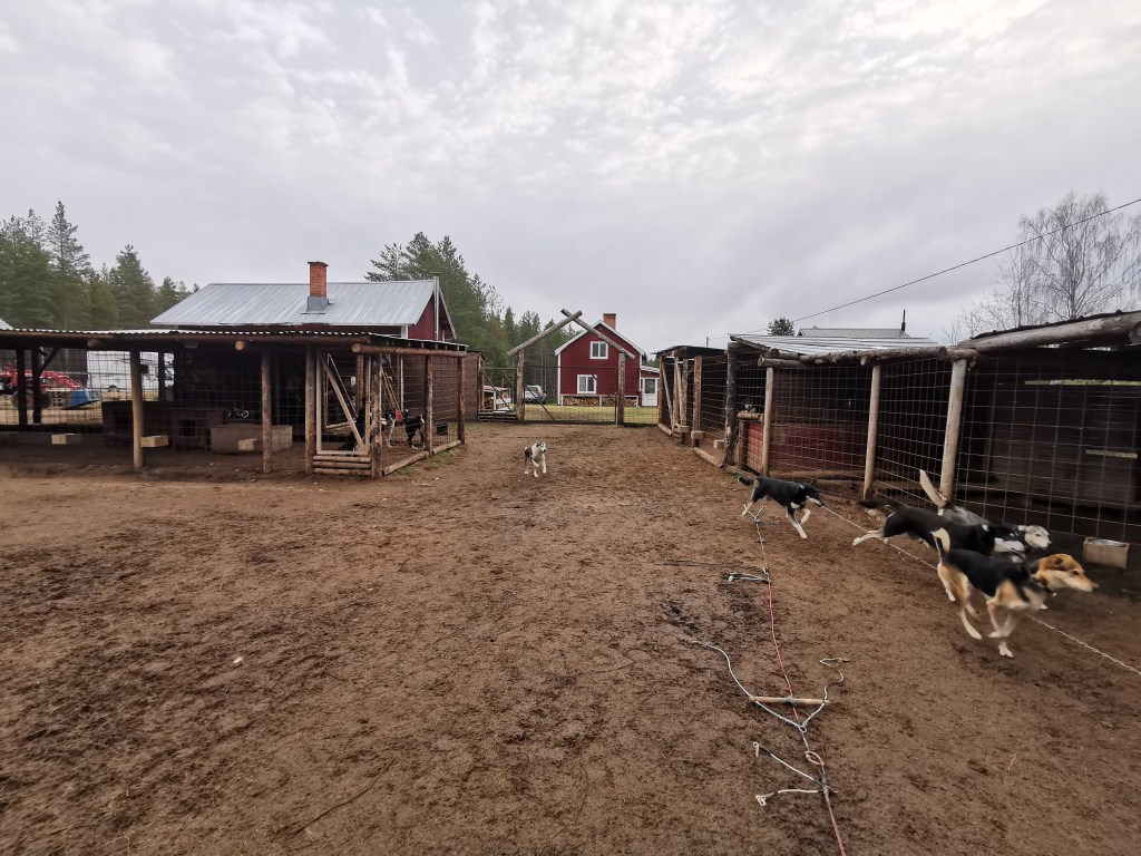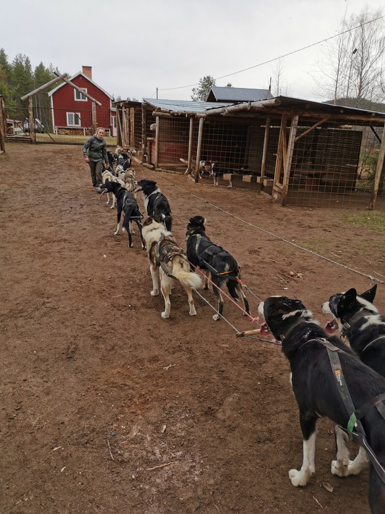 Nous avons commencé par la visite du chenil. Ils ont au total 27 chiens, dont 14 sont venus de France avec Cédric. Ses deux premiers chiens s’appellent Sherpa (avec des yeux vairons) et Louka (son frère). Il y avait aussi Dark (qui tient du Greyhound, et qui aimait bien embêter Malo), Grizzly (aux poils longs), Digger (le plus ancien), Willow, Falcon, Laika (la maman), Ice, Looping, Kiko (le sauteur)…