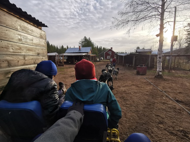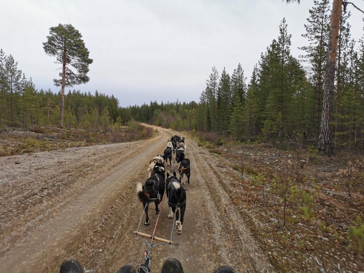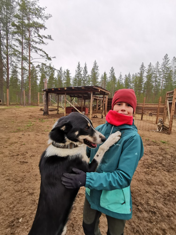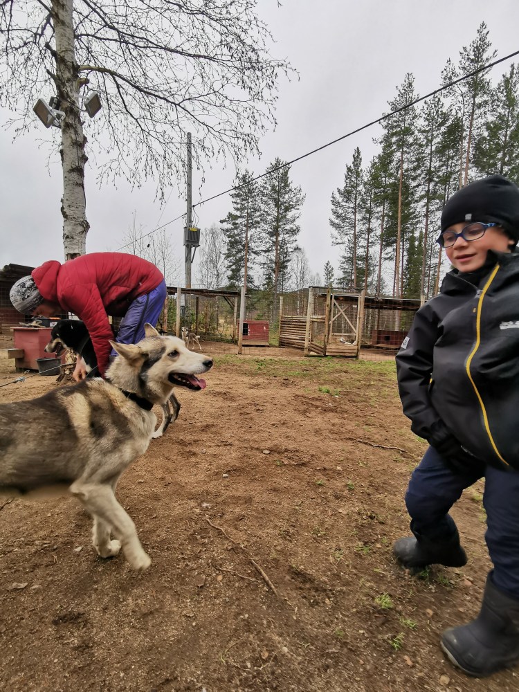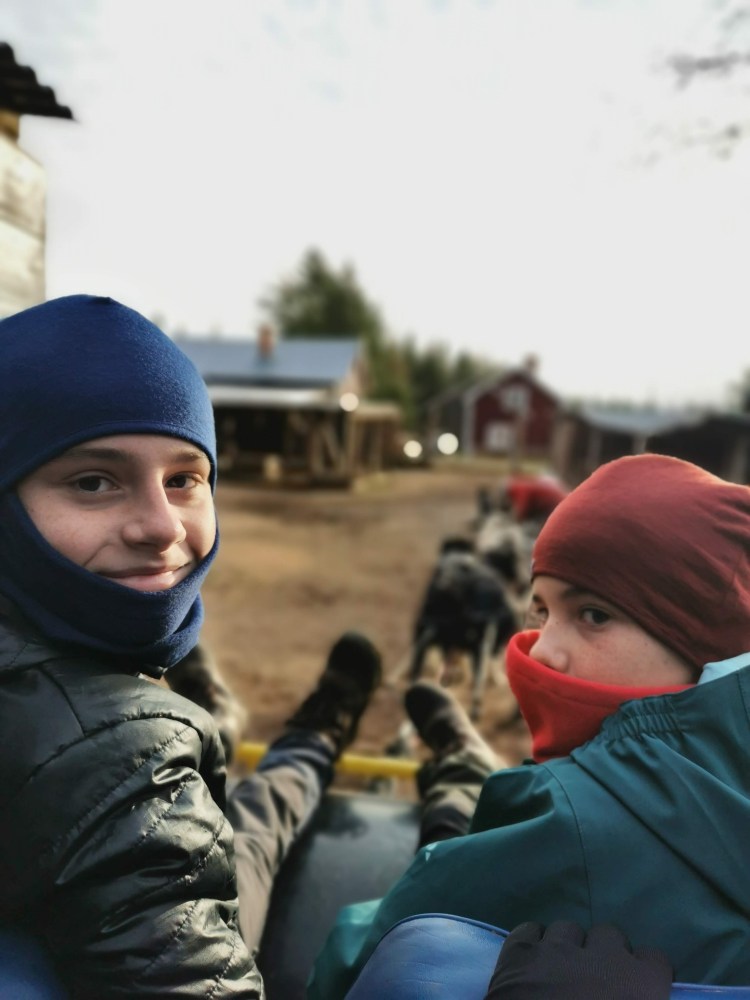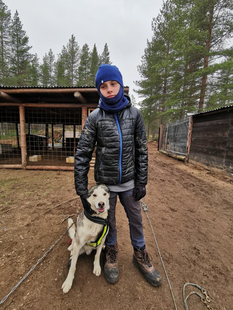 Dès que Cédric donne le départ, les chiens tirent très fort d’un coup. Nous voyons les chiens tellement excités de sortir en ballade. Nous (Hugo et Louis) étions devant sur le kart et avec la vitesse des chiens, nous prenions un vent bien froid en pleine figure…
