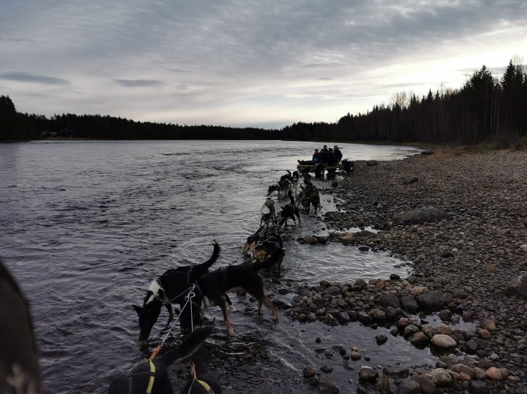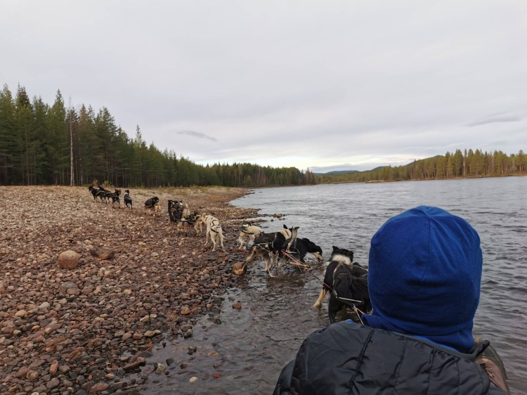 Cédric les a amené à ce qu’il appelle « la buvette ». Il s’agissait en fait de la rivière dans laquelle les chiens vont se baigner littéralement alors que l’eau est glacée !