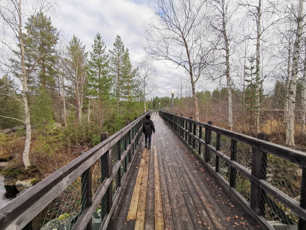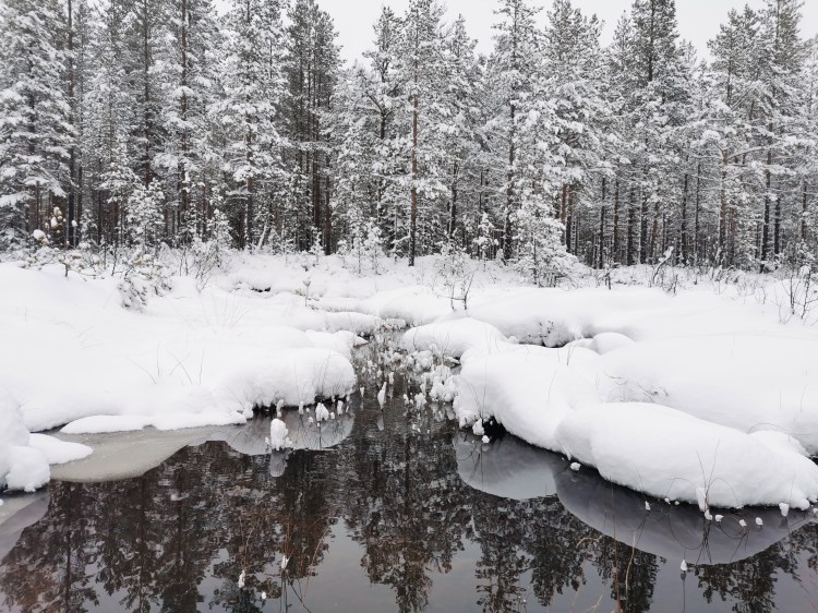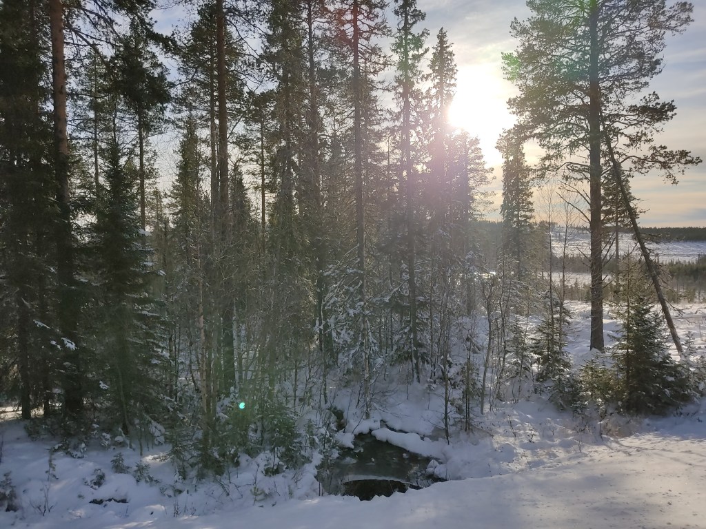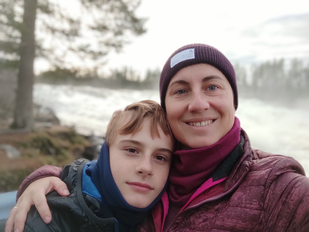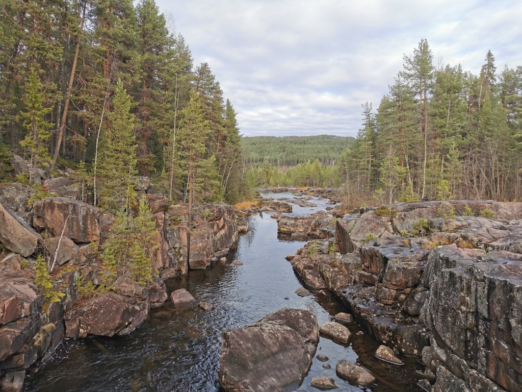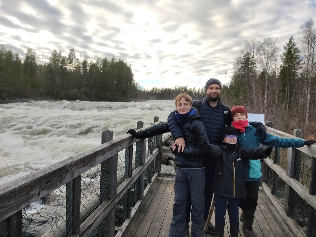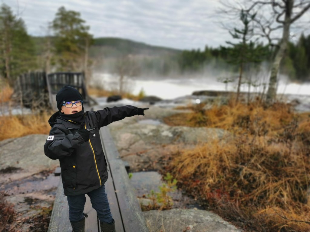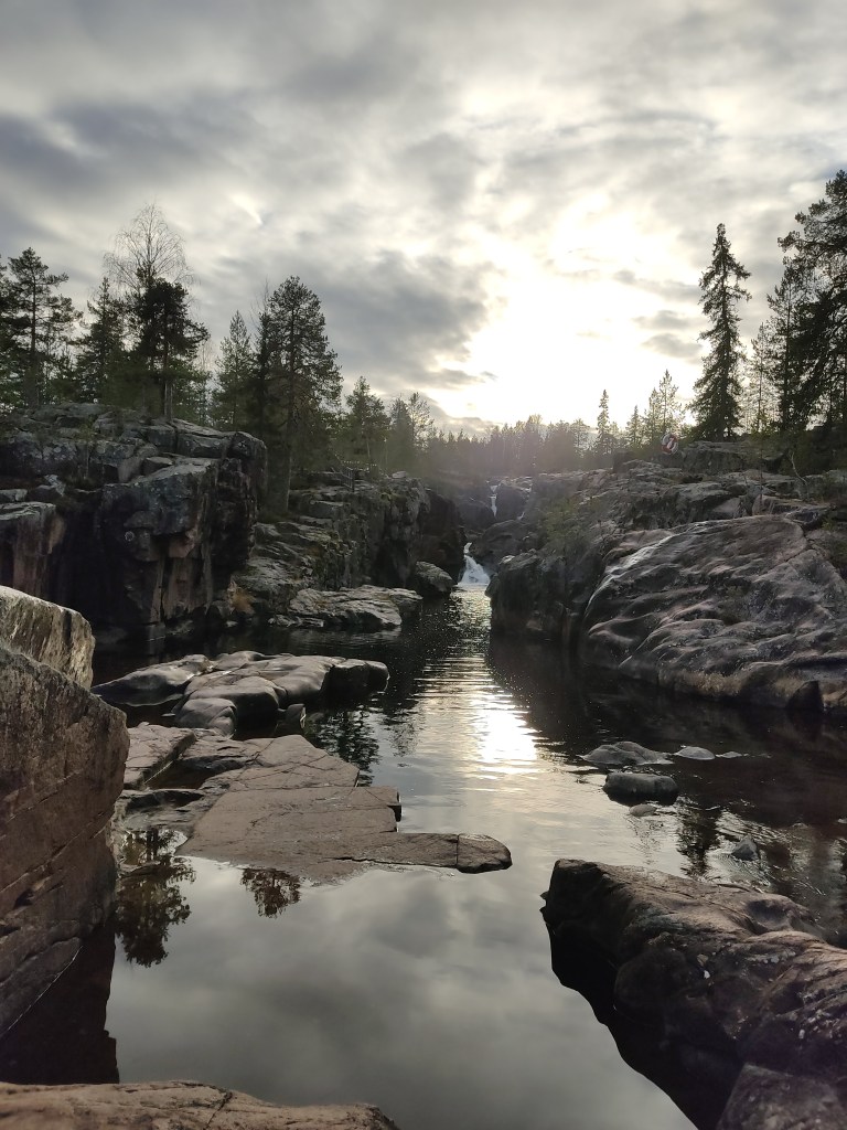 Nous faisons route tôt le matin pour rentrer en Laponie. A l’heure du déjeuner, nous arrivons à notre premier stop : les chutes de Storforsen sur la rivière Pite.