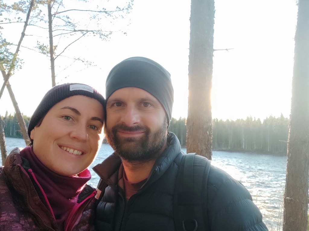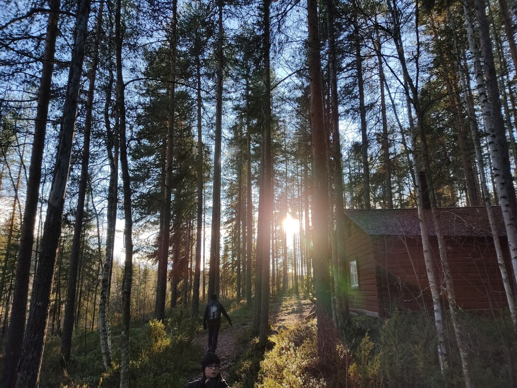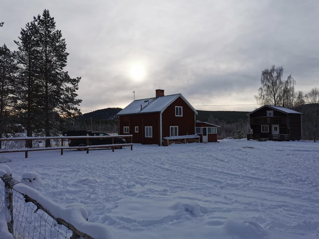 Nous reprenons la route car nous sommes attendus pour 18h pour passer la nuit avant notre journée découverte à Laponie Mush. Une fois passé la route principale, il nous faut parcourir 40km de piste pour rejoindre notre lieu de rendez-vous. Louis observe les paysages par la fenêtre et nous fait stopper d’un coup : il a vu 2 élans dans la prairie !!! Ludo tente la photo dans le pré avec eux, mais il les fait fuir 🙂