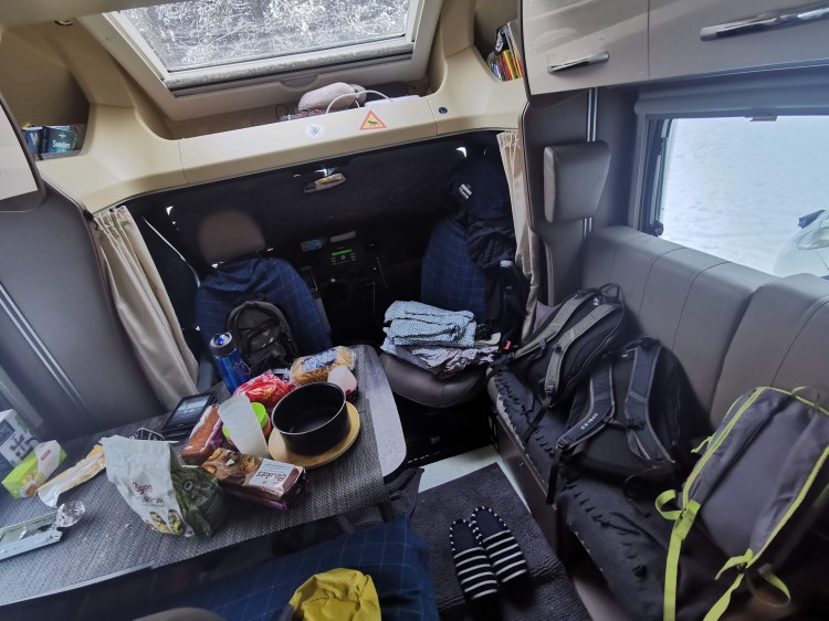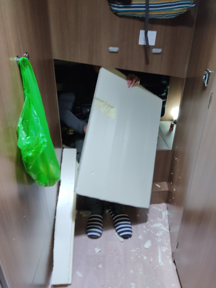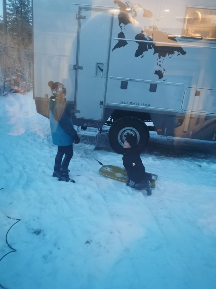 Nous profitons de la fin de journée pour ajuster l’aménagement du camping-car pour le Grand Froid ! Et oui nous avons constaté que les chambres des enfants étaient de vraies glacières. Ludo s’occupe de les isoler et en profite pour nous faire un petit tapis isolant dans notre salon. Au top ! nous sommes mieux parés pour le Grand FFFFFFFroiiiiiid !