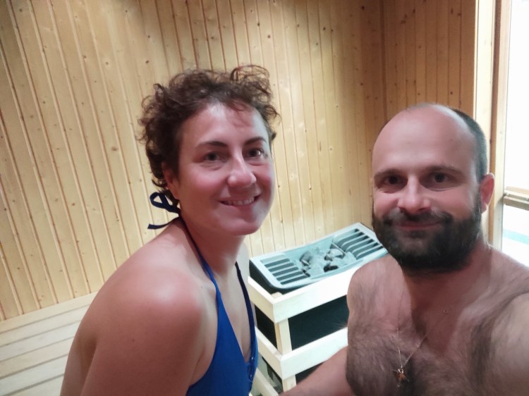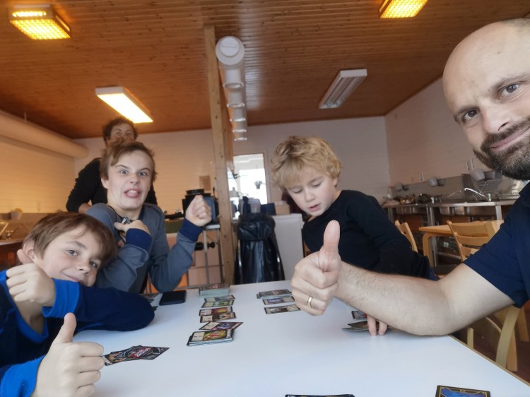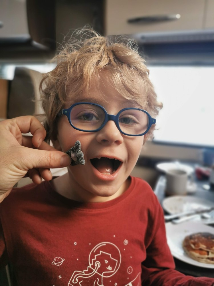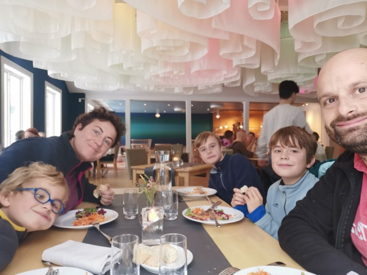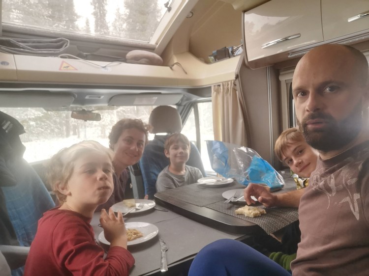 Nous rentrons au camping-car, profitons d’un goûter en famille dans notre salon/salle à manger 🙂 devant Koh Lanta et ensuite repos des parents au sauna !