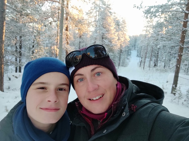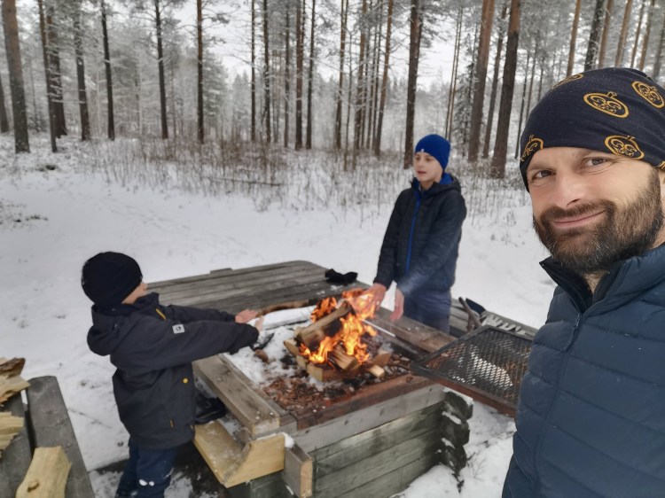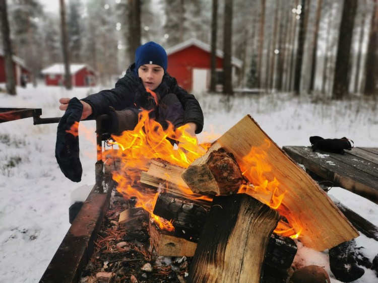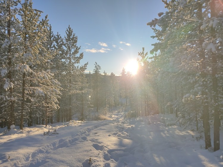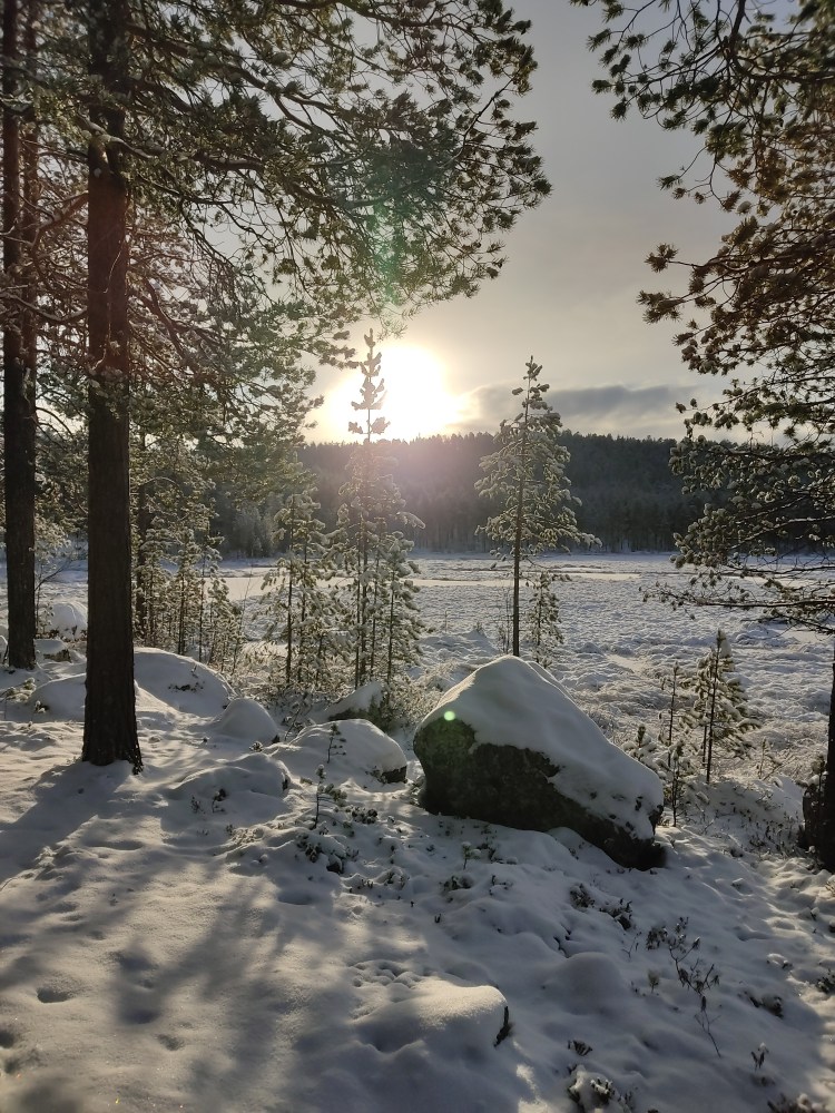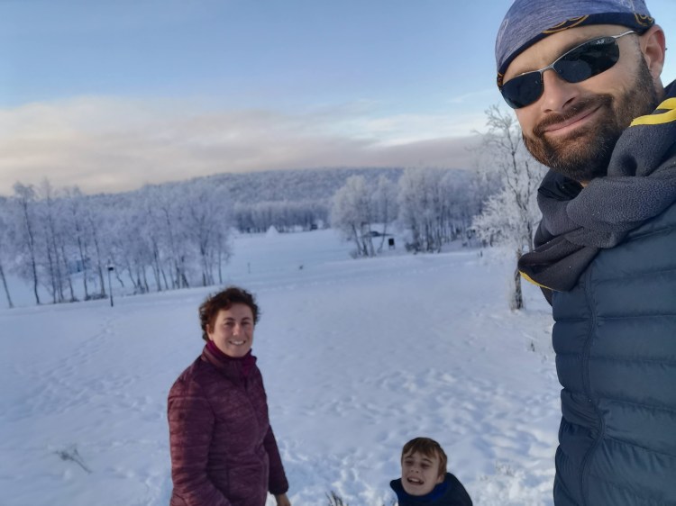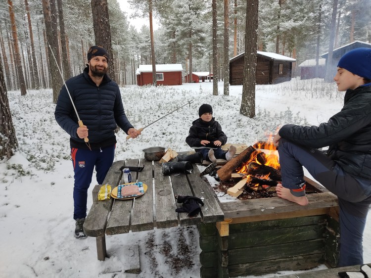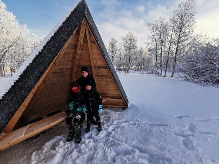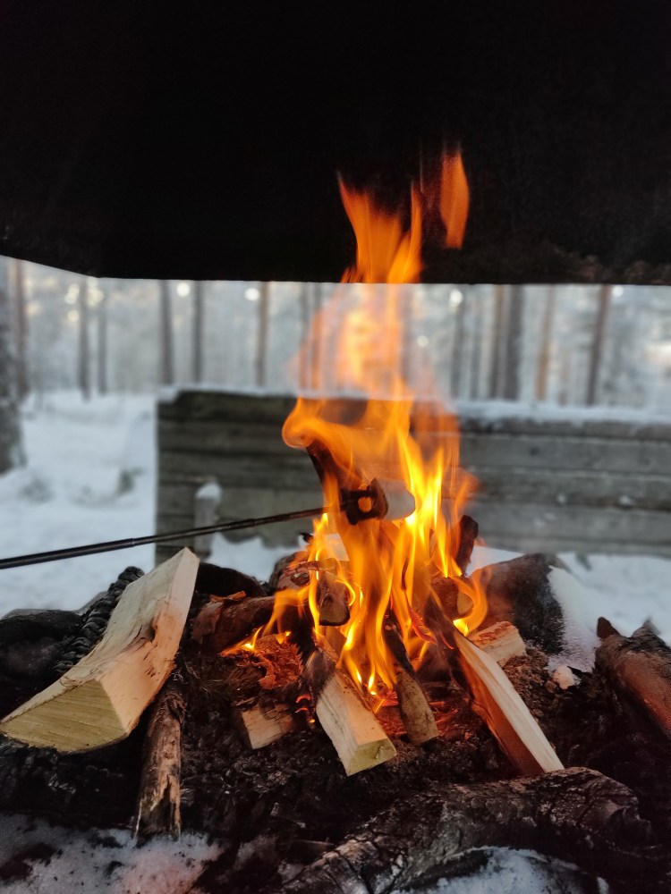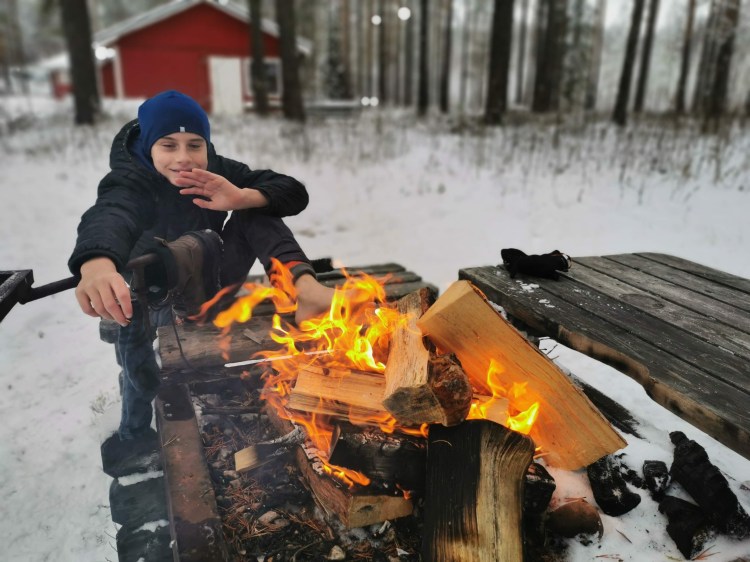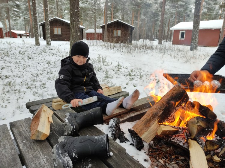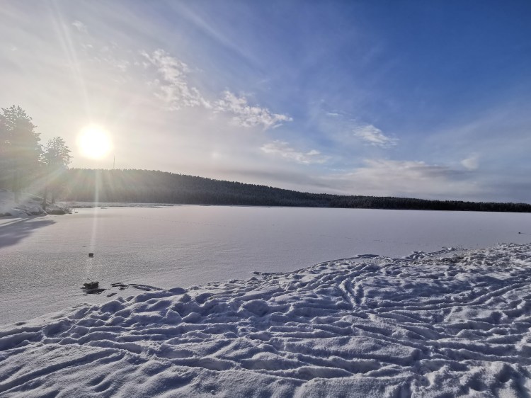 Le lendemain, le soleil brille… alors c’est le bon jour pour se promener dans la neige. Nous partons sur les pistes de ski nordique dans la forêt et près d’un lac. Cela devient un grand classique en Suède mais qu’est-ce que c’est beau ! En fin de ballade, il y a une belle cabane pour faire un feu et nous en profitons pour nous faire griller quelques chamallows.