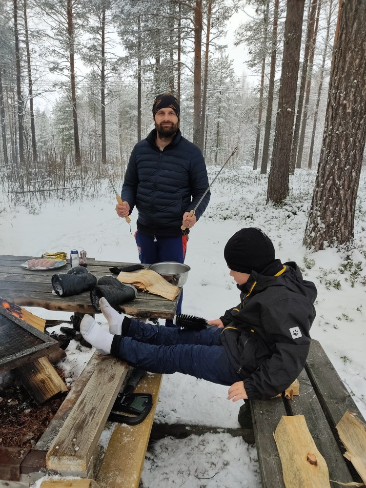Après le repas, nous allons au centre de Jokkmokk pour trouver de vrais chaussettes chaudes aux enfants et aussi acheter la spécialité du coin : la viande de renne ! Nous nous rendons pour cela chez un « boucher/charcutier » que de rennes. Lla personne qui nous reçoit est un Sami. Il est adorable et nous donne de bons conseils, on a adoré la viande fumé en apéro et sautée.