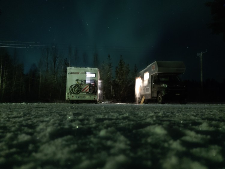 Le lendemain, nous attendons de rencontrer une nouvelle famille de grands baroudeurs, les Tamzingues, une famille suisse avec 2 enfants partis pour 2 ans autour de l’Europe. Nous passons une journée tranquille riche en échanges et en partages (et en jeux pour les enfants). Nous traquons encore les aurores le soir, car le ciel étoilé est magnifique mais les aurores n’auront pas la même intensité que la veille.