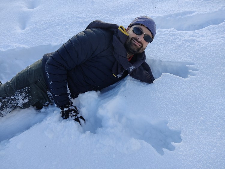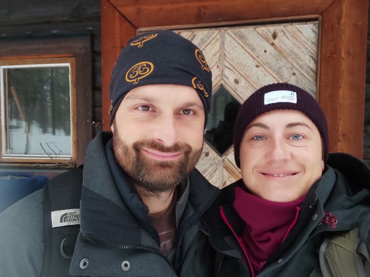 Nous nous réveillons après une bonne nuit au milieu de nulle part. Il a plu au petit matin rendant la neige mouillée et glissante, le chemin du retour va être plus difficile que la veille. Nous trouvons beaucoup de traces récentes d’élan à proximité du chemin de randonnée mais malheureusement nous n’arriverons pas à en approcher un…