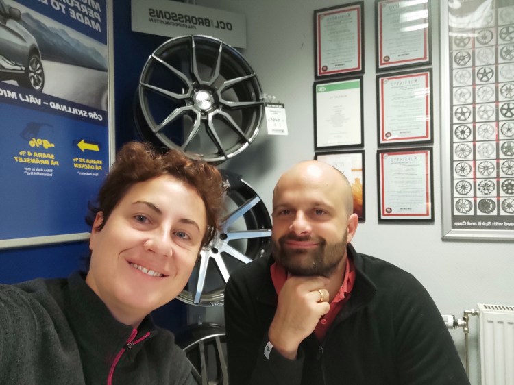Mardi 27 octobre 7h, nous voilà chez Euromaster pour faire installer 4 pneus cloutés. En 1h, c’est fait. Ils nous laissent les 4 pneus été sur le côté, à nous de les faire rentrer dans la soute ?!? Alors nous avions déjà dans l’idée de nous séparer du petit vélo de Malo pour pouvoir garder nos pneus. Mais au final, nous arrivons à ranger seulement 2 pneus dans la soute. Du coup, nous ferons cadeaux de 2 pneus été et un vélo enfant à Euromaster 🙂