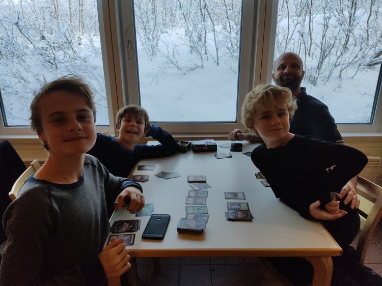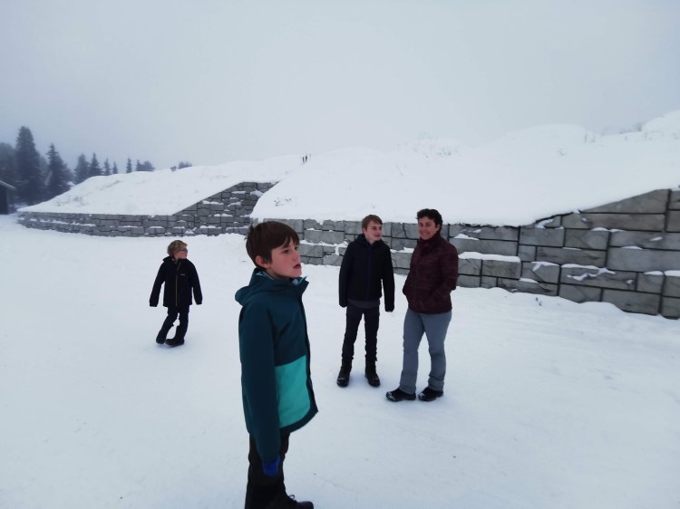 Après quelques batailles de boules de neige, de la luge, nous nous rentrons au chaud dans la maison de services : la maman à la cuisine pour préparer le repas préféré de Hugo (lasagnes et fondant au chocolat) et le papa défiant ses garçons au jeu « Heroes Realm ».