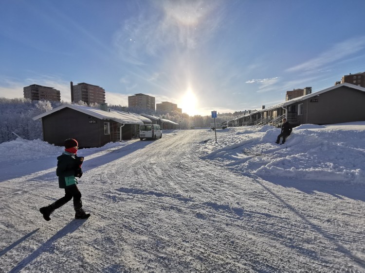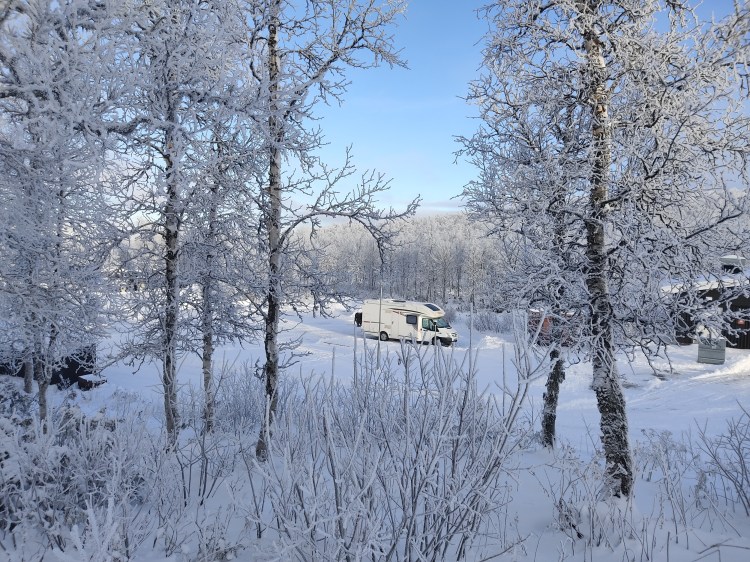 Nous rentrons pour la fin de journée sur Kiruna où nous resterons dans un camping à nouveau. Avec le froid, les journées qui se raccourcissent donc moins de lumière du soleil pour notre panneau solaire, nous avons vraiment besoin d’être branché électriquement pour ne pas risquer une panne de chauffage pendant la nuit.