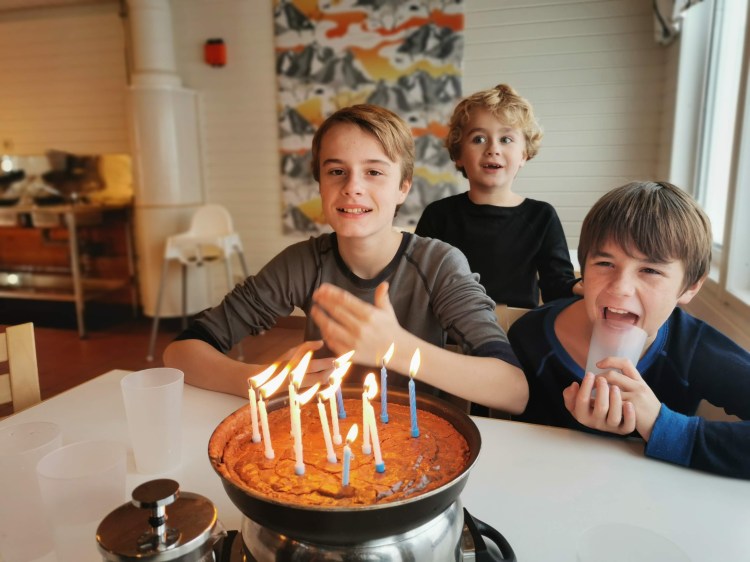 Le lendemain, nous nous réveillons sous la belle lumière du soleil qui brille sur la neige fraiche pour fêter les 13 ans de notre grand Hugo. Ce sera une journée tranquille à profiter du bel environnement du camping en famille en démarrant bien avec les pancakes au sirop d’érable pour le petit-déjeuner.