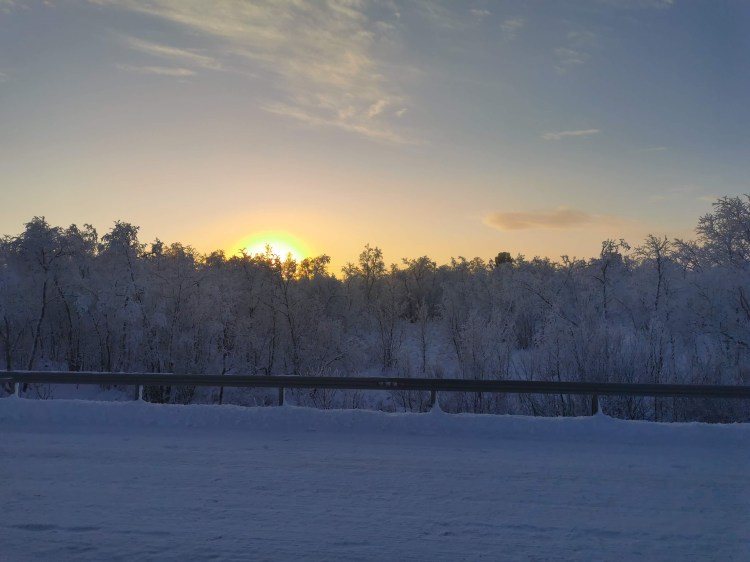 Cette fois, nous sommes bien équipés pour remonter vers le Nord. Quel bonheur de rouler sans entendre le « tacatacatac » des chaînes qui tapent sur la carlingue. Nous partons pour Kiruna, la plus grande ville de la Laponie.