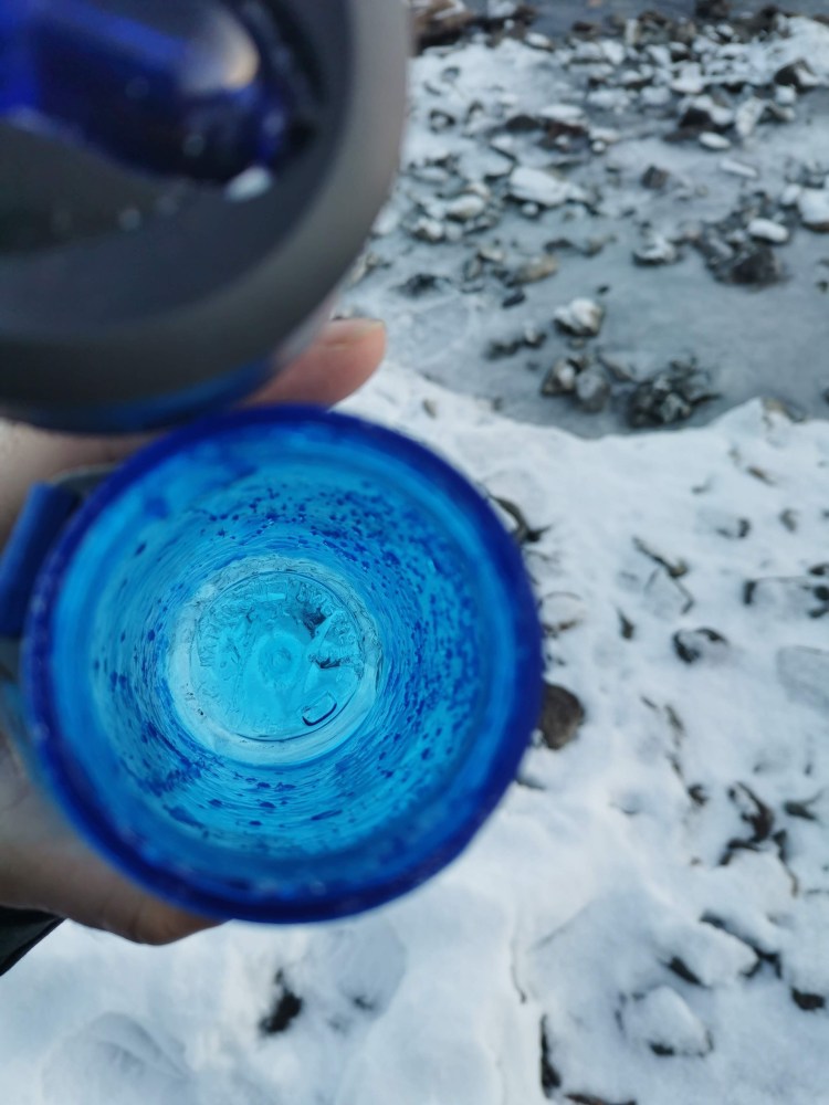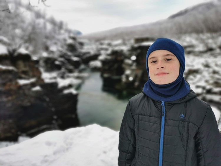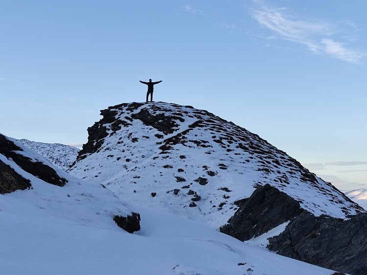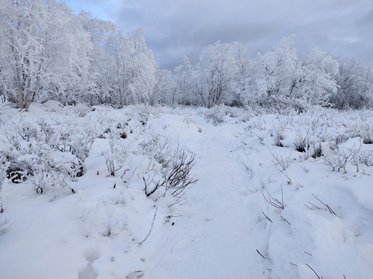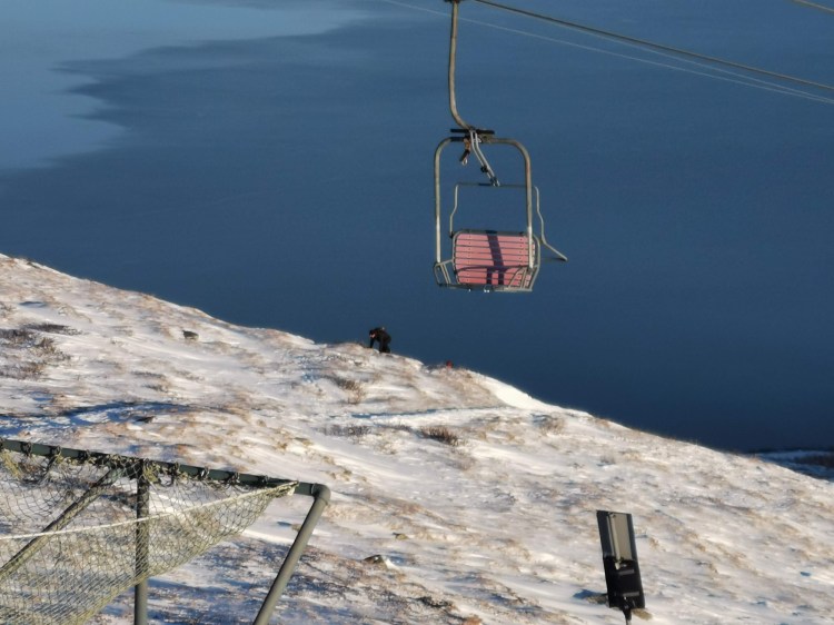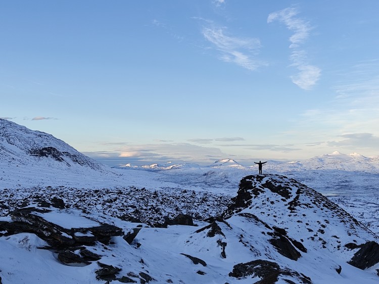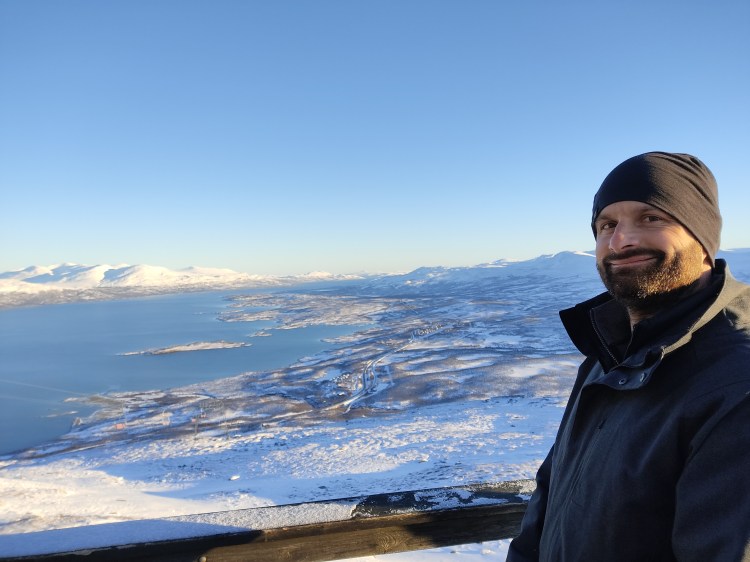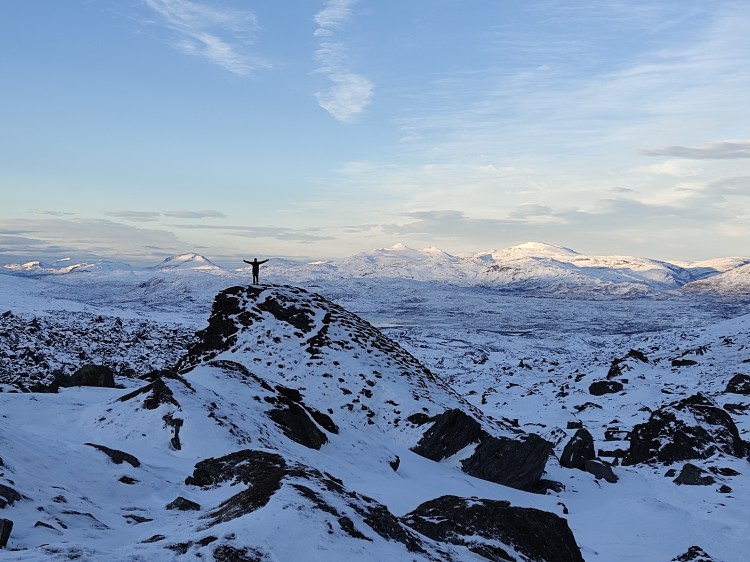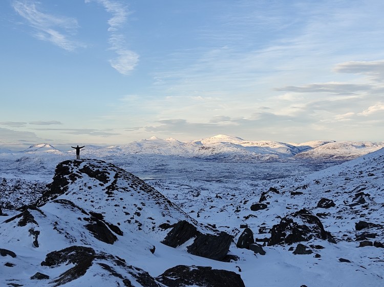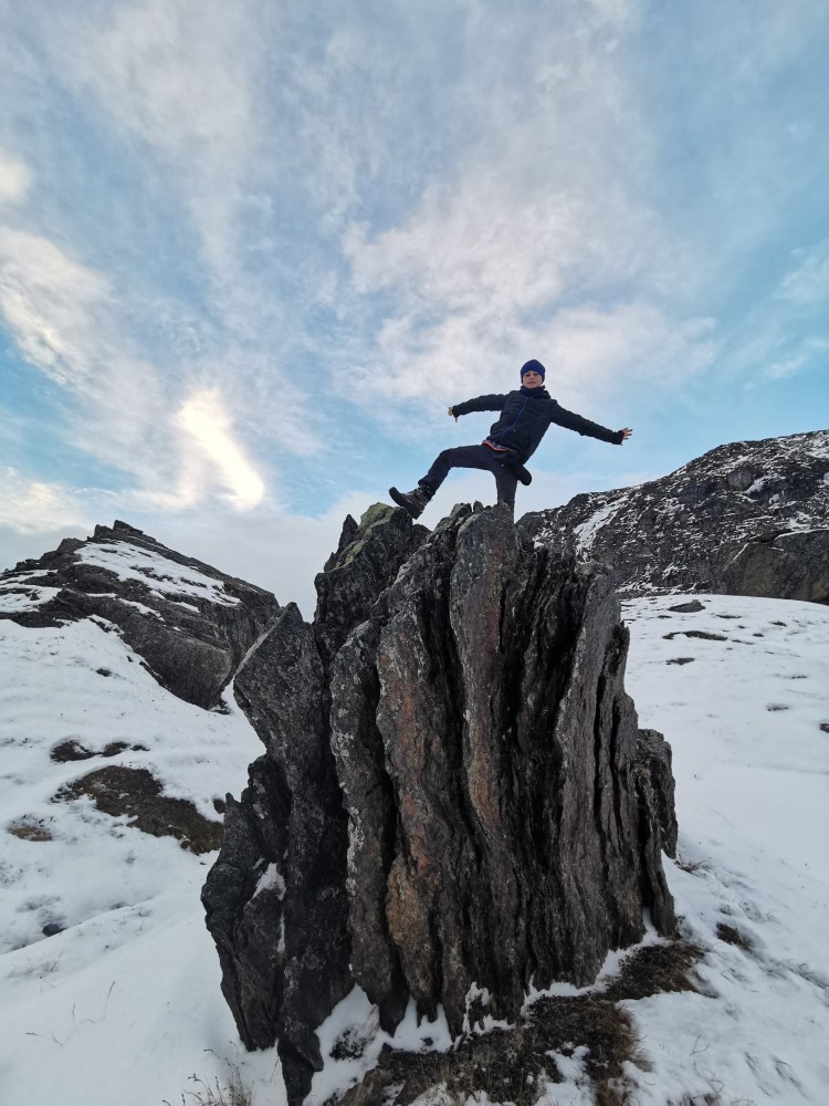 Nous repartons pour une randonnée sur un des sommets du parc, Nuolja, où se trouve la Aurora Sky Station. Il y a normalement un télésiège pour monter mais il ne fonctionne que l’été et à partir du mois de décembre. C’est un endroit magnifique pour observer les aurores boréales. Nous partons pour 9km et 600m de dénivelé. Louis surmonte sa phobie de l’altitude sur les chemins de neige un peu glissant, la carotte à la clé : les 3 garçons dépunis de 15 jours sans écran 🙂 Une fois arrivés à la Aurora Sky Station, nous restons seulement 5 min avec un pique-nique flash éclair. Et oui il fait -15°C là-haut !!!