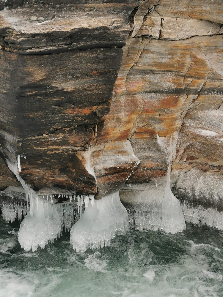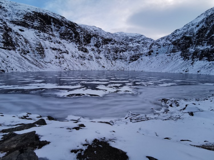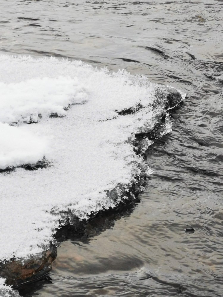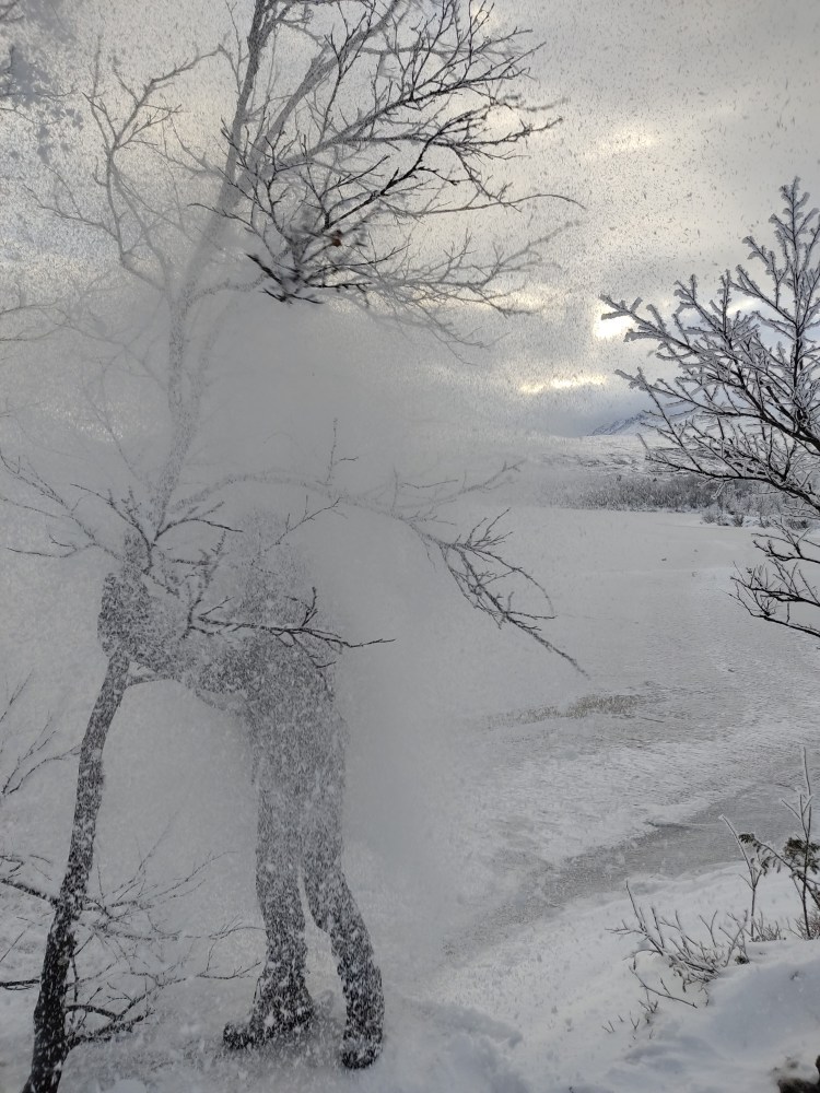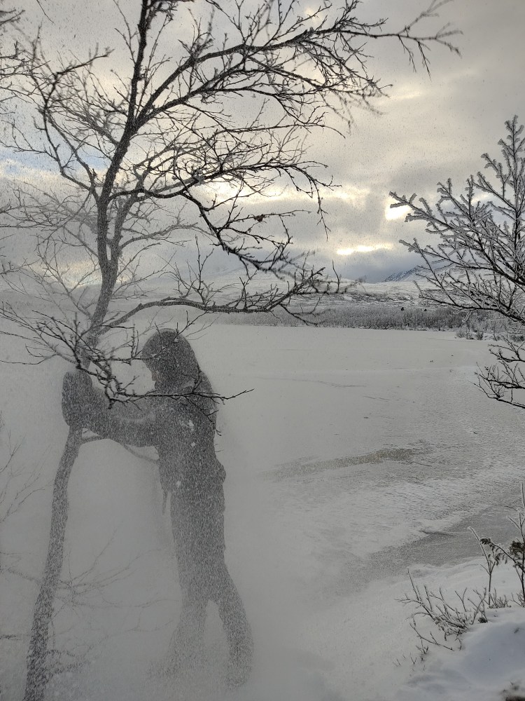 Nous arrivons sur un grand lac gelé. Nous avançons prudemment sur la glace se rassurant que rien ne casse sous nos pas. Nous entendons des bruits qui résonnent sous la glace comme si un être vivait en dessous et nous faisait signe…