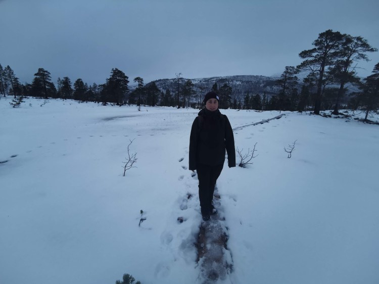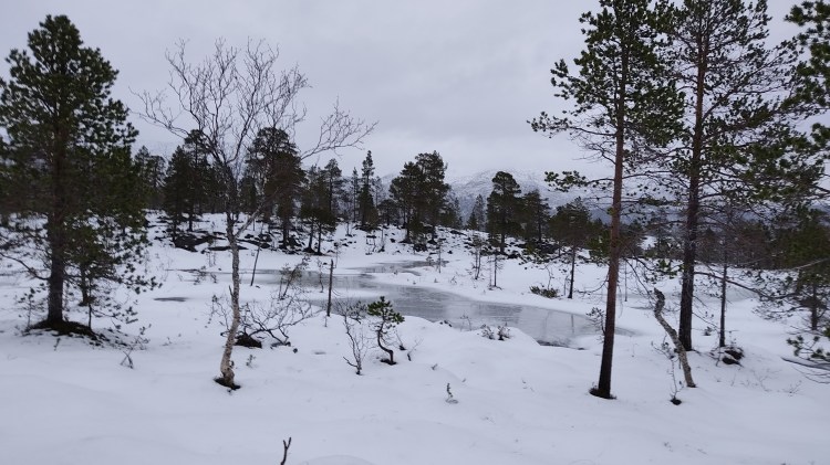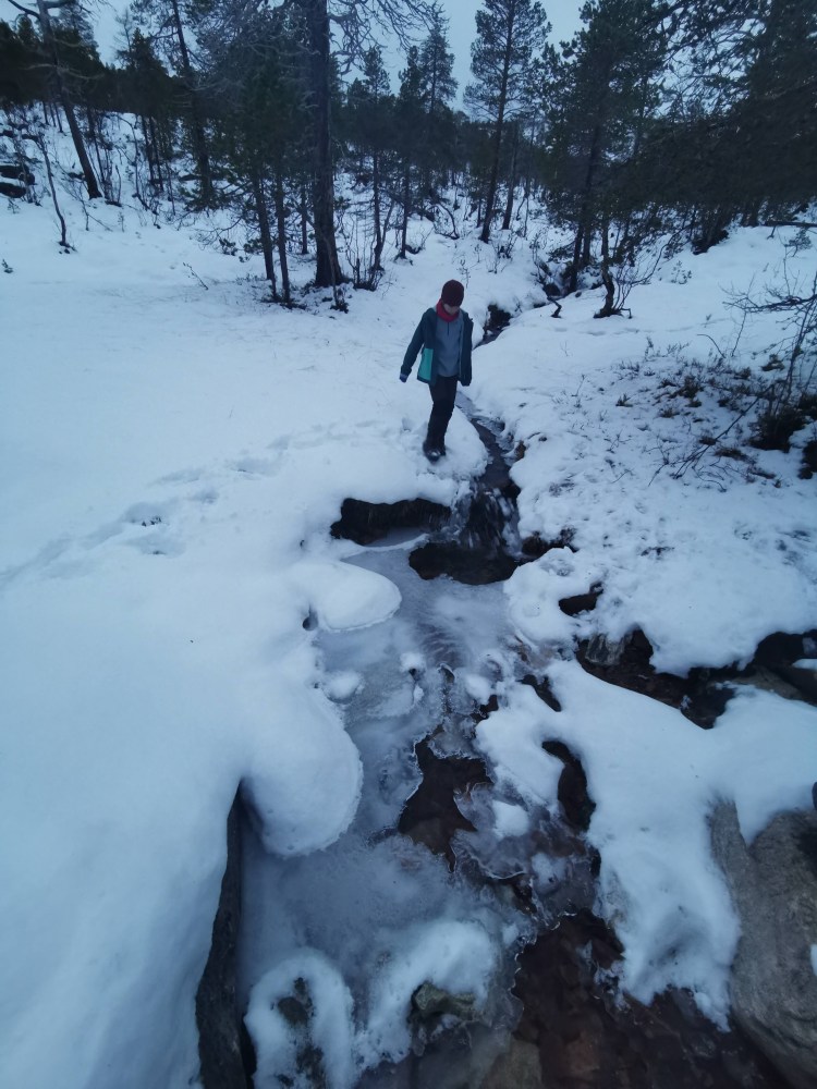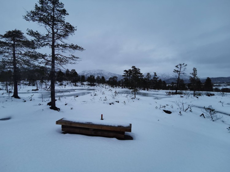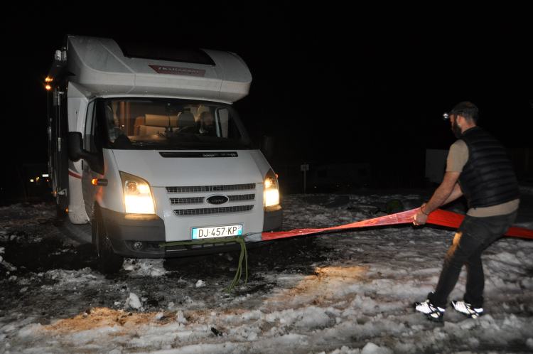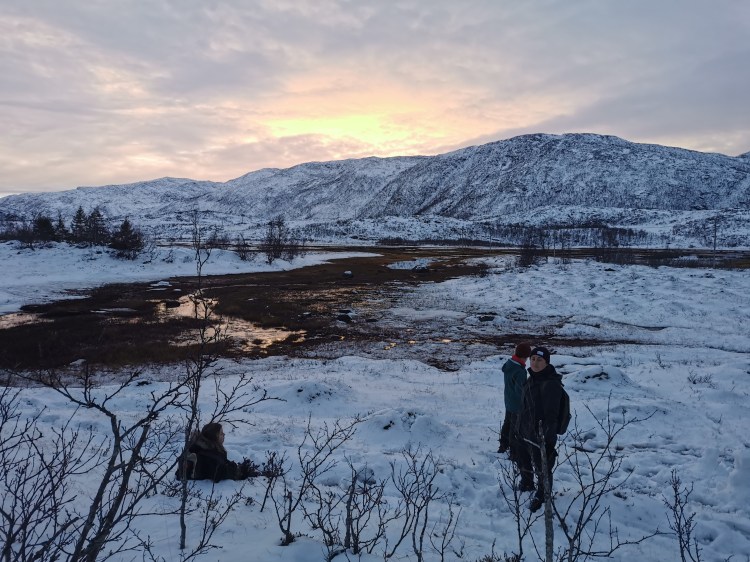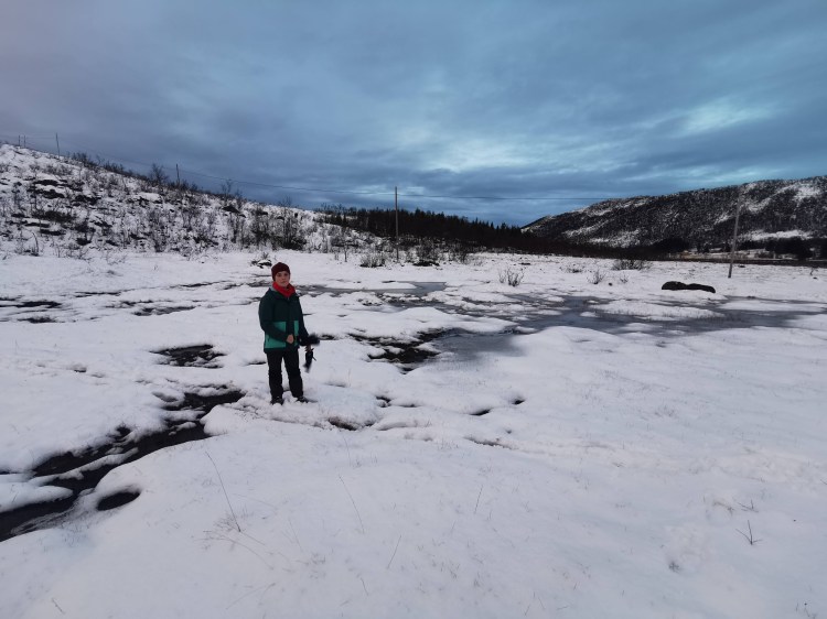Le lendemain, nous faisons route cette fois vers le sud de l’île pour découvrir le Parc national d’Anderdalen. Nous trouvons un camping près de l’entrée du parc afin de pouvoir partir dès le jour en promenade dans le parc. Je vous rappelle les jours sont très courts maintenant : 3 heures de luminosité… donc il faut être au taquet pour ne perdre aucune minute de luminosité pour visiter. Malheureusement pour nous, ce camping sera une vrai galère. Cela a déjà un peu mal commencé à l’arrivée, tout est fermé et je finis par avoir la gérante au téléphone qui me demande des preuves de notre quarantaine, nos id de passeports… je comprends au final que son mari est malade du COVID et qu’ils sont tous en quarantaine. Après moultes discussions, elle me laisse m’installer dans le camping et me fait confiance (comme tout norvégien qu’il se doit) pour laisser l’argent dans une enveloppe dans la boite aux lettres. Le camping est en étages, pas simple avec cette neige et cette glace qu’on peut trouver sur les chemins. On va pour s’installer le plus droit possible dans la neige. Mais sous la neige, il y avait de la … boue !!! en clair on s’est embourbé de 10cm ! Heureusement les petits pois arrivent 1h plus tard et Jérôme avait eu la bonne idée d’acheté une sangle au cas où il aurait eu besoin de se faire treuiller. Bon finalement c’est nous qu’il tire de cette galère !! Leur billy a chauffé !!