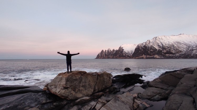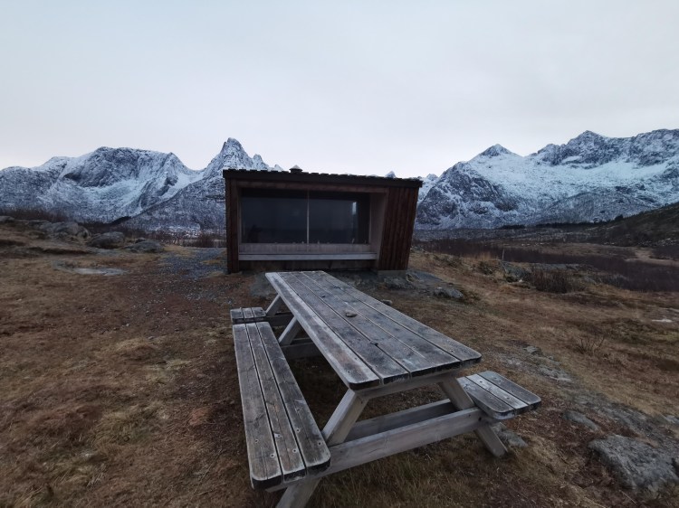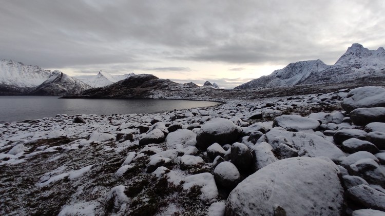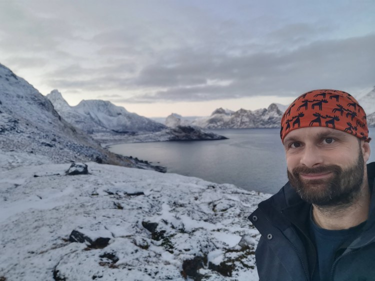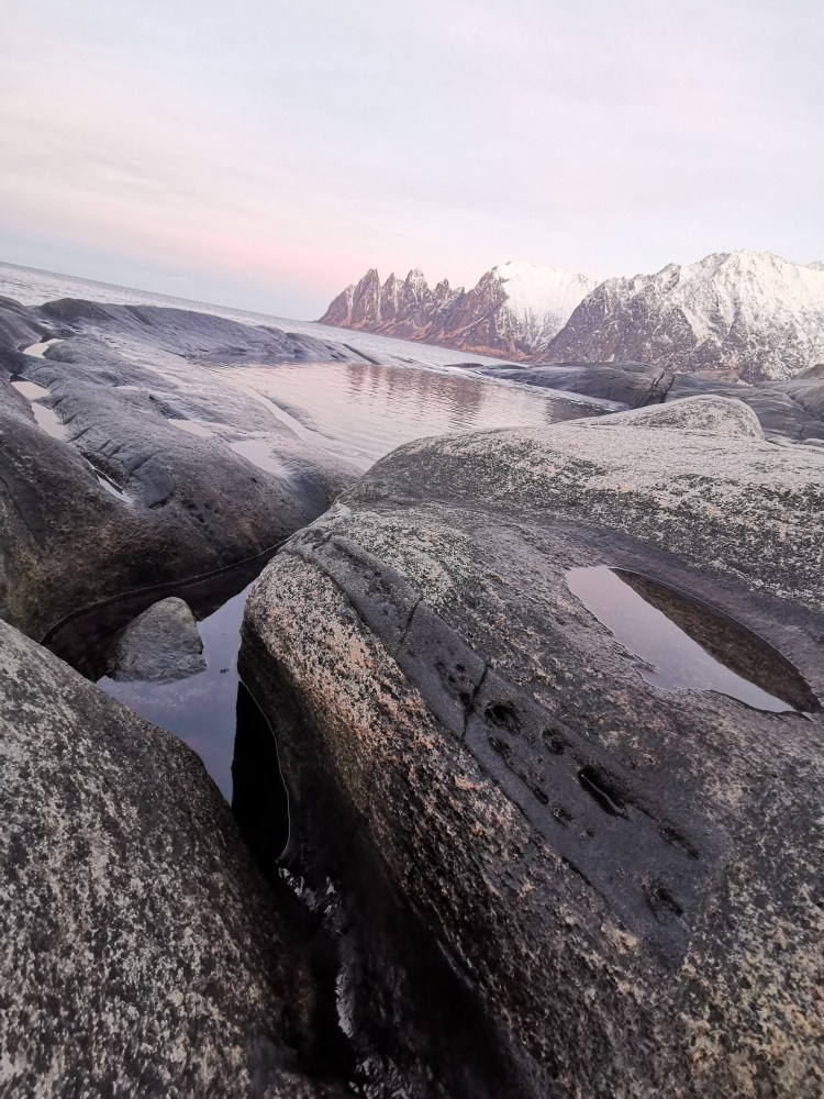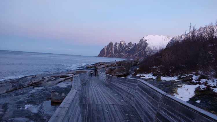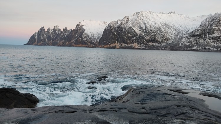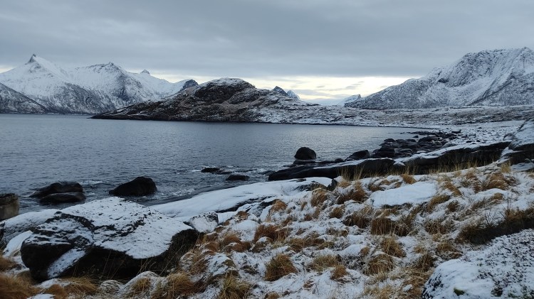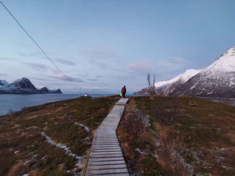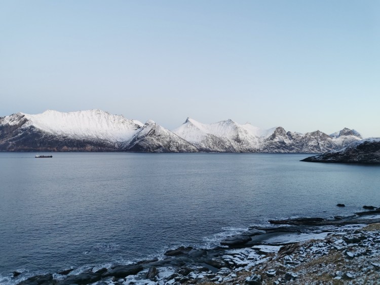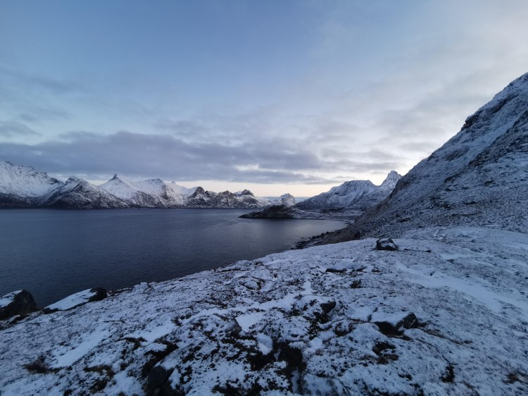 Nous continuons notre route sur la côte nord majestueuse de Senja. Nous nous arrêtons pour la nuit dans le fjord de Ersfjorden au départ d’une petite ballade aménagée sur le bord de mer.
