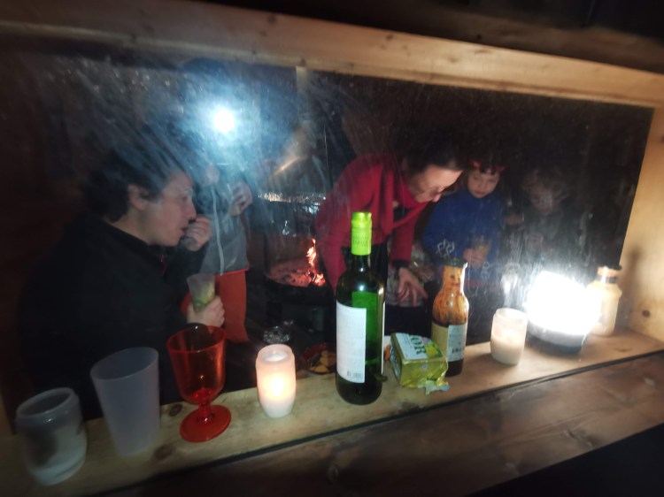 Nous passons la soirée tous ensemble dans la cabane avec vue sur la mer pour partager un petit dîner au feu de bois avec nos amis. Jérôme poussera également la chansonnette et nous apprendra la chanson qui colle tellement bien à notre aventure : « caravan show ».
