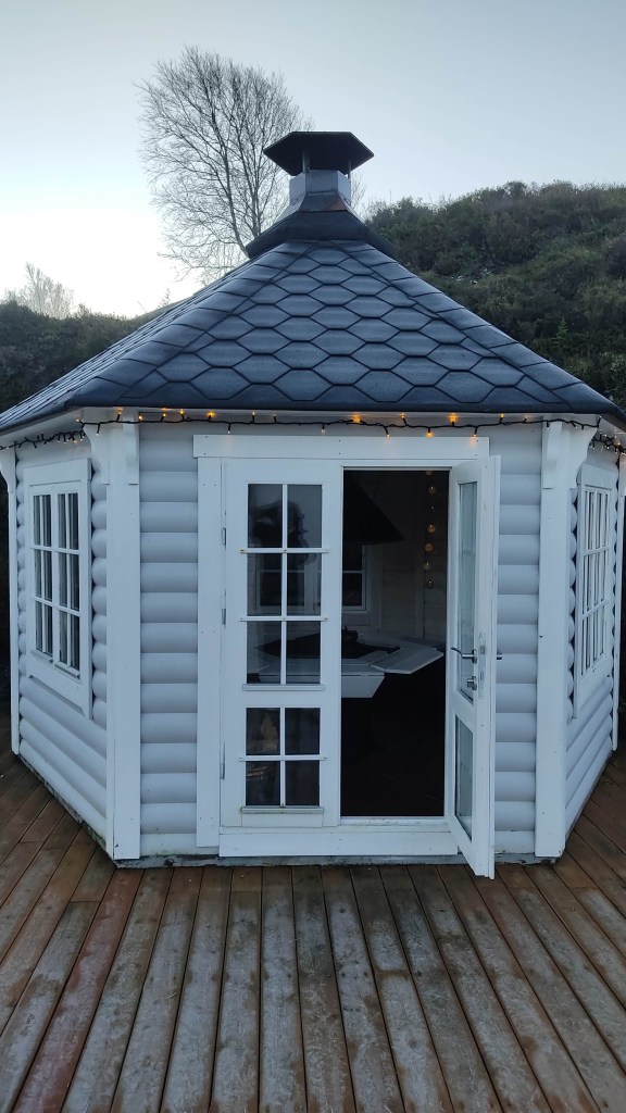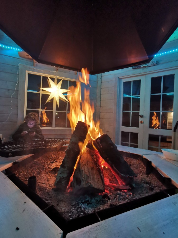 Nous rentrons pour passer une dernière nuit sur notre super spot de Noël. Pour marquer le coup, nous nous faisons un petit feu de bois dans la cabane et faisons griller des saucisses pour le dîner.
