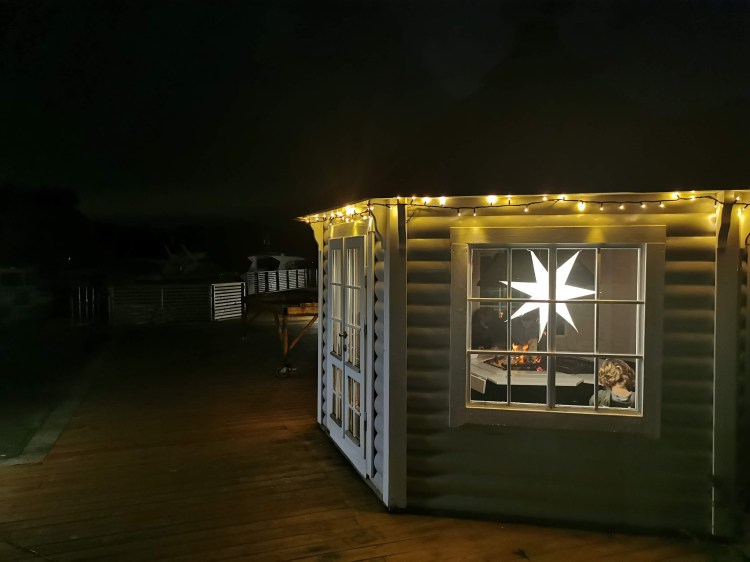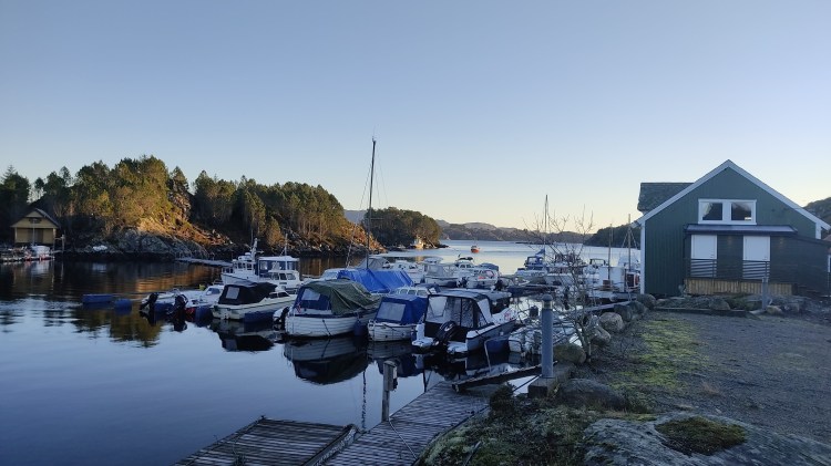 Nous trouvons un super endroit sur une petite île de la côté de Bergen. La côte est très morcelée de multiples îles et îlots, cela nous rappelle un peu Göteborg. On se retrouve sur un petit port aménagé, tous seuls, avec tous les services à porter de main (électricité, eau, vidange et même la cabane norvégienne pour manger autour d’un feu !). Après toutes les aventures de la journée, on est refait ! On va donc rester les 4 jours de Noël ici comme tout est fermé en Norvège pendant cette période.