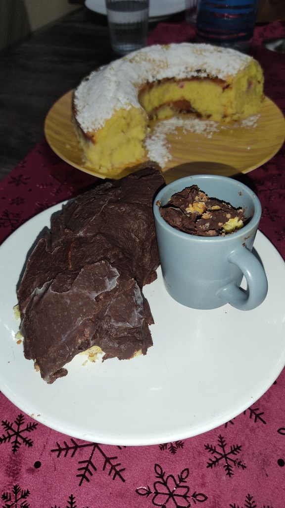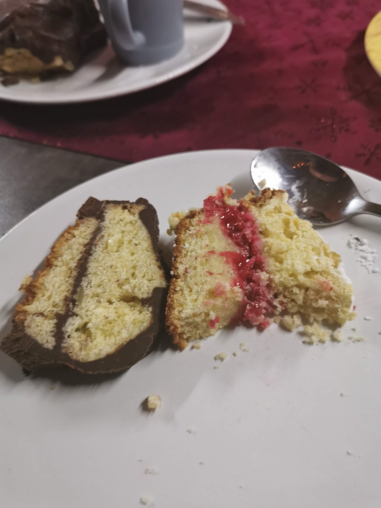 On décide d’oublier cette mésaventure et de vivre pleinement nos fêtes à l’autre bout de l’Europe. Et ce soir, c’est raclette !! Oui on a craqué, qu’est-ce que le fromage peut nous manquer… A raison de 10€ les 400g de raclette Le Rustique, c’est comme si on mangeait du foie gras :p et je peux vous dire qu’on l’a apprécié comme si elle venait de Haute Savoie ! Et en dessert, une buche au chocolat pas très jolie à cause de nos mésaventures mais le goût y est :p