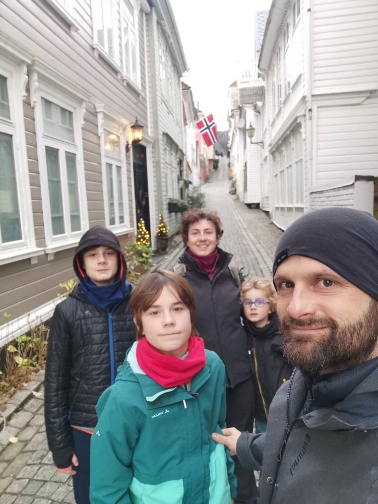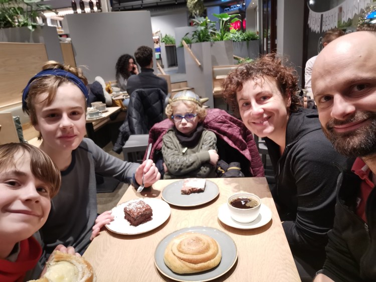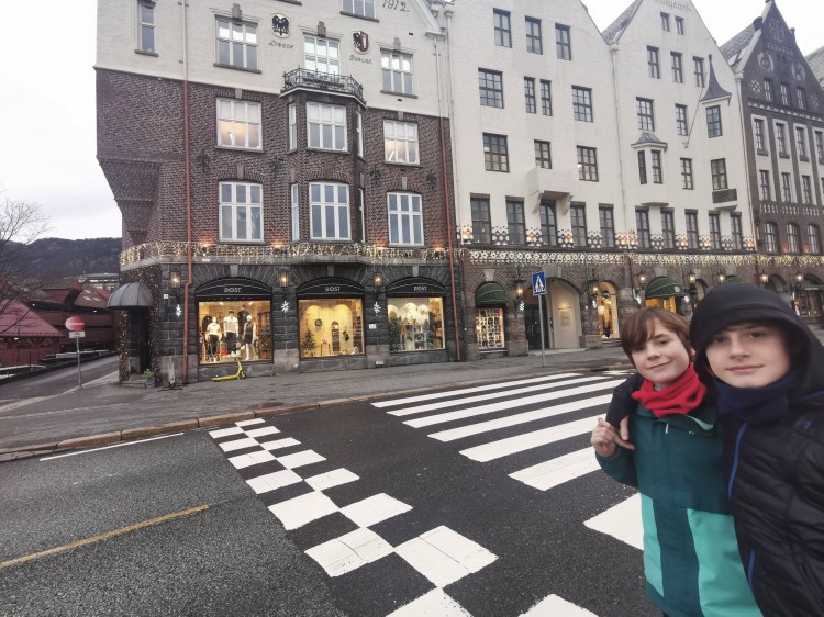 Une fois revenue dans le centre-ville, nous nous offrons une petite pause goûter dans une vieille boulangerie de la ville (notez que Malo est un peu boudeur à ce moment-là :p). Nous continuons de flâner dans les rues piétonnes de Bergen pour rentrer à notre camping-car.
