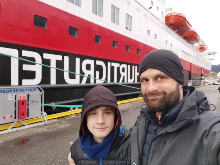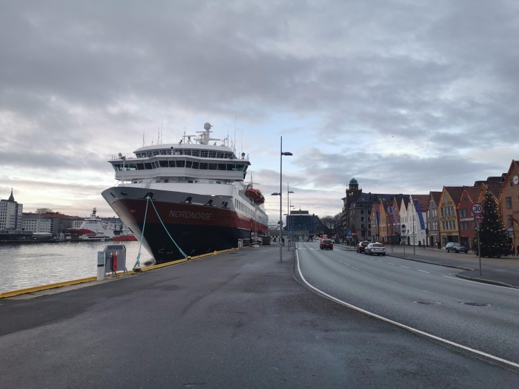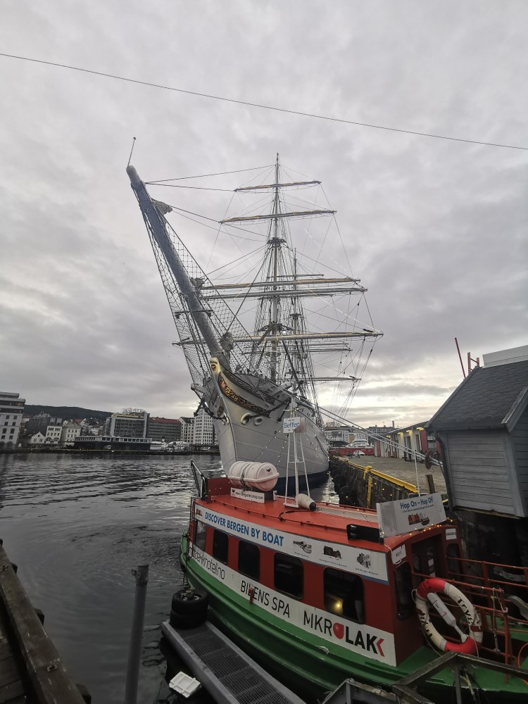 Après un déjeuner rapide, nous partons pour visiter Bergen l’après-midi. Nous commençons par rejoindre le quartier Bryggen, une enfilade de maisons colorés en bois sur les quais classé au patrimoine mondial de l’Unesco. Nous nous perdons à l’intérieur de ce petit quartier dans une atmosphère vieille époque. Au passage, nous voyons une multitude de bateaux Hurtigruten. Ce sont les ferrys qui font visiter les fjords de Norvège.