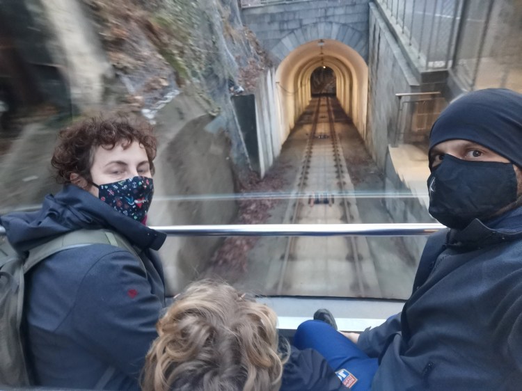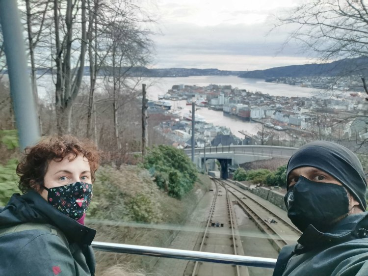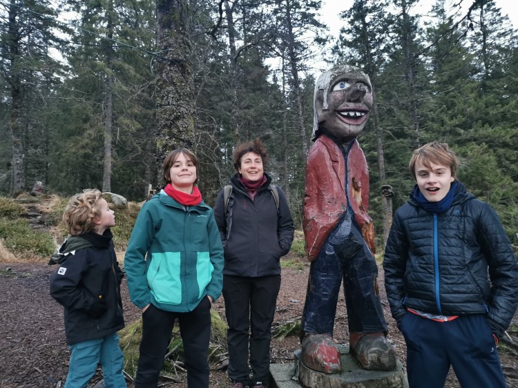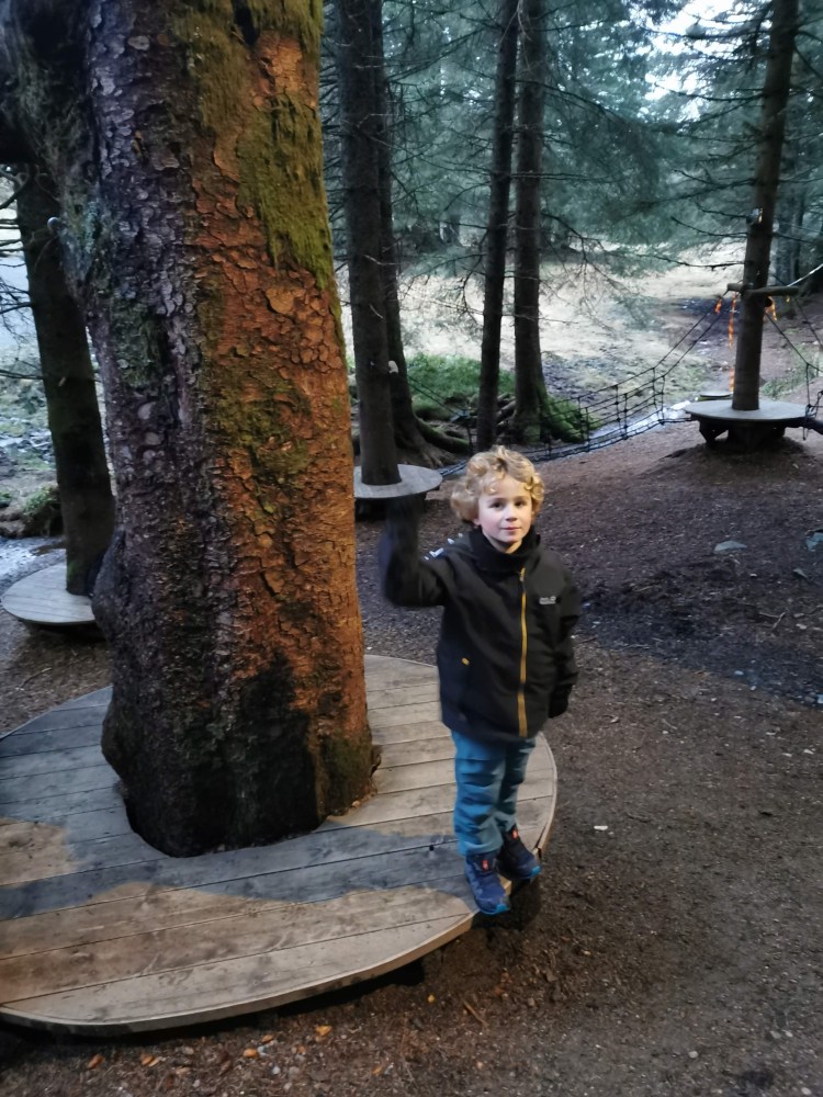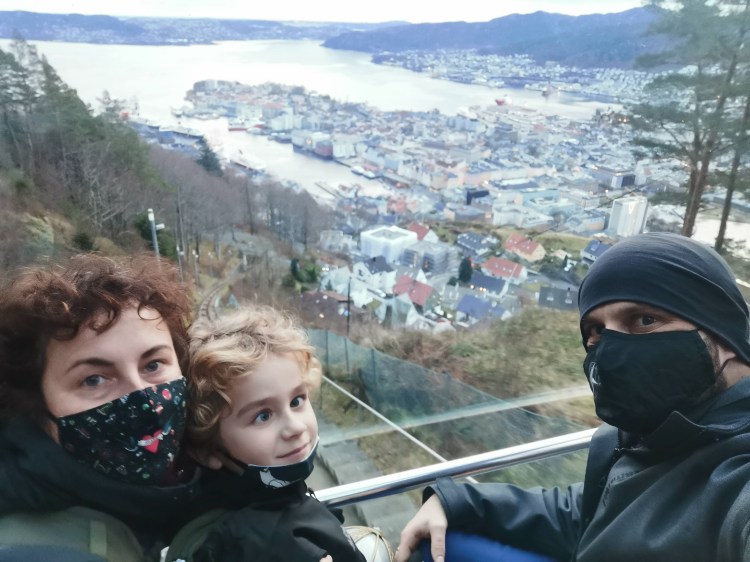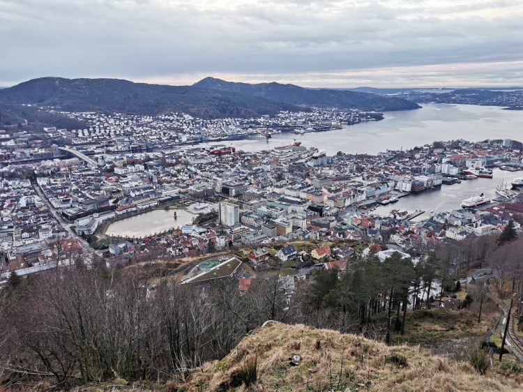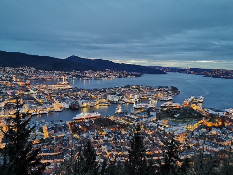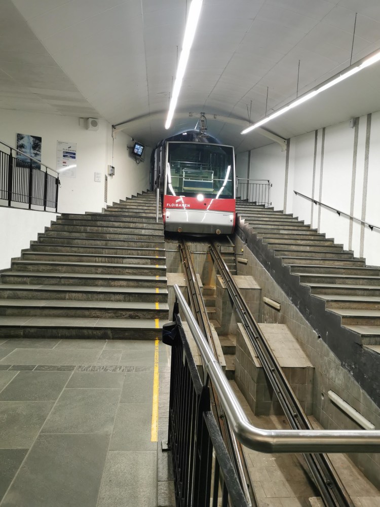 Nous prenons ensuite le funiculaire pour monter sur le mont Floyen et profiter d’une vue magnifique sur Bergen. Nous y arrivons en milieu d’après-midi, le soleil commence à se coucher tout doucement. Nous redescendons à pied la colline, cela nous permet de profiter de la vue autant de jour que de nuit. Les aménagements au mont Floyen sont top en plus, notamment pour les enfants. Les garçons passent un bon moment dans les jeux perchés dans les arbres.
