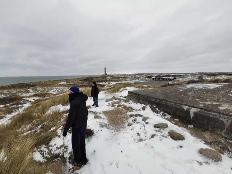 Le lendemain matin, nous profitons du promenade sur la plage devant les eaux de Kategatt. Ces plages avaient été investies par les allemands du temps de la guerre. On y retrouve encore pas mal de bunkers. Cette ballade est vivifiante : l’air est sec et froid, et il y a pas mal de vent.