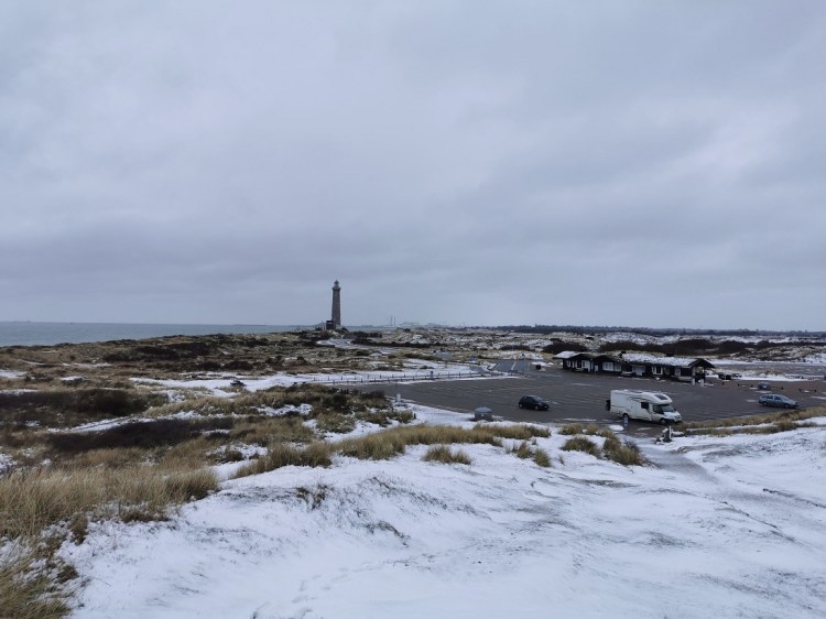 Après notre traversée « seuls » en ferry de la Norvège au Danemark, nous arrivons à la tombée du jour à Hirtshals. Bien que le Danemark n’autorise que le transit pour les étrangers, on décide tout de même d’y passer la nuit sur la pointe extrême nord du pays. Nous nous rendons donc du côté de Skagen où nous passons la nuit seuls sur le grand parking.