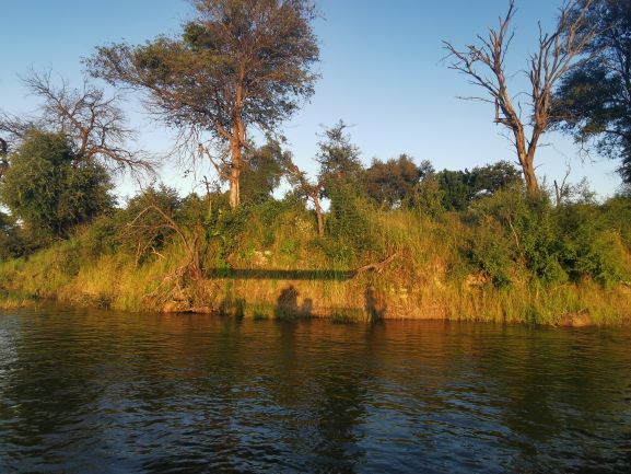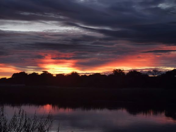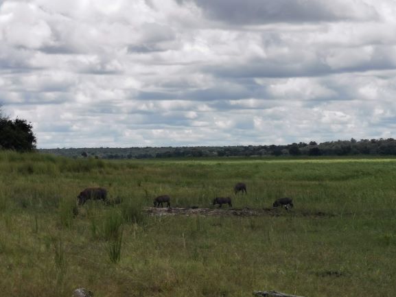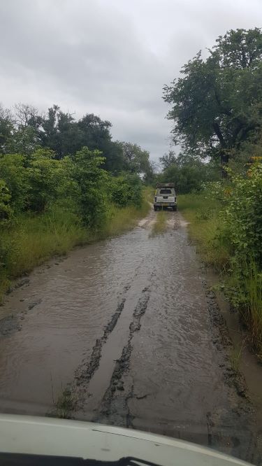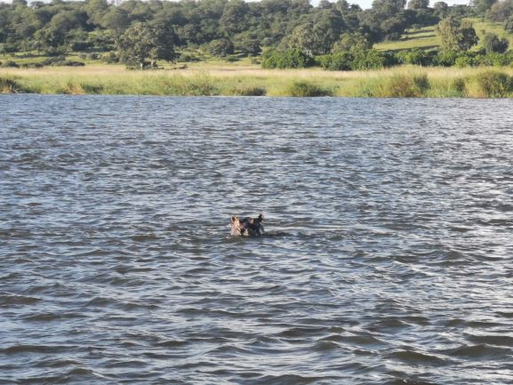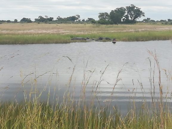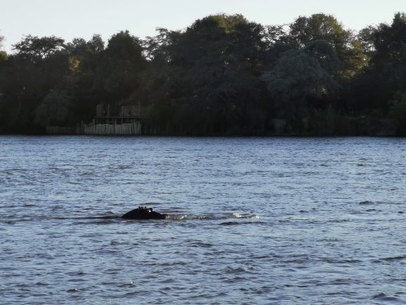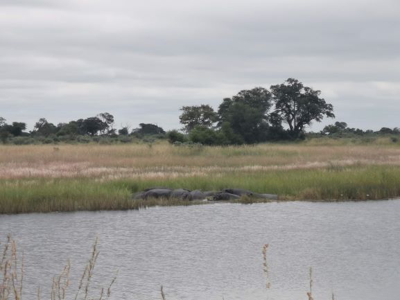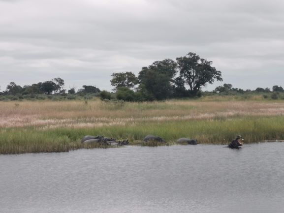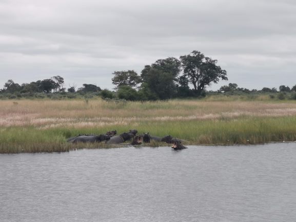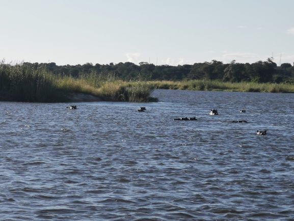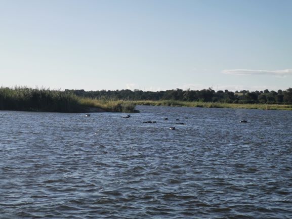 Après un copieux petit-déjeuner, nous partons en direction du Mudumu Park, les 3 familles ensemble. Malheureusement, le parc est fermé. Les pistes sont inondées par moment jusqu’à plus d’1 mètre de fond. Nous faisons donc demi-tour. Cependant comme la route principale traverse le parc, nous décidons de nous enfoncer un petit peu dans le parc sans risque en suivant les pistes qui amènent à des lodges. Nous ferons chou blanc, aucun animal croisé. Nous nous autorisons une petite dernière piste en direction de la « hippo pool ». Nos amis ne nous suivent pas avec le camping-car pour ne pas prendre de risques. Le jeu en valait la chandelle car nous sommes bien tombés sur un groupe de hippopotames baignant dans la rivière.