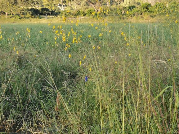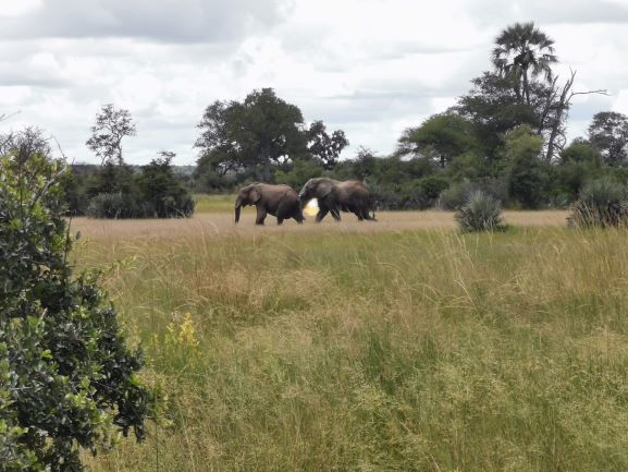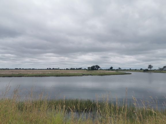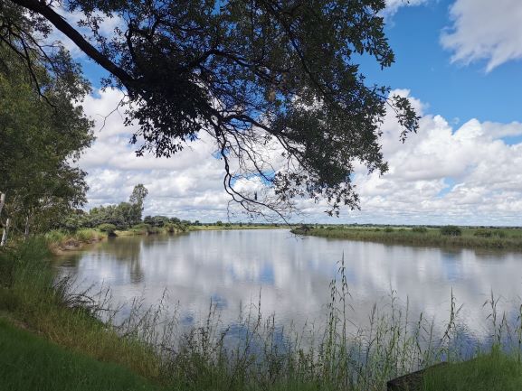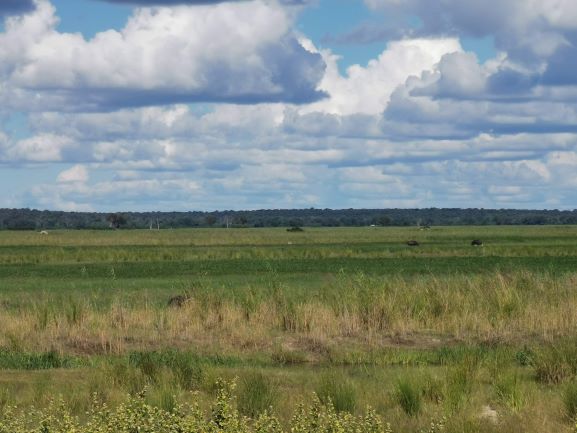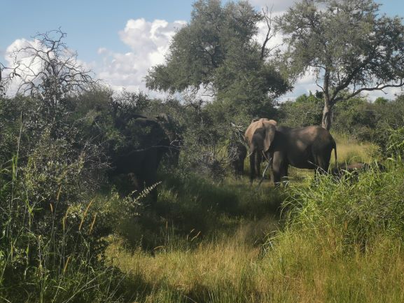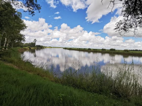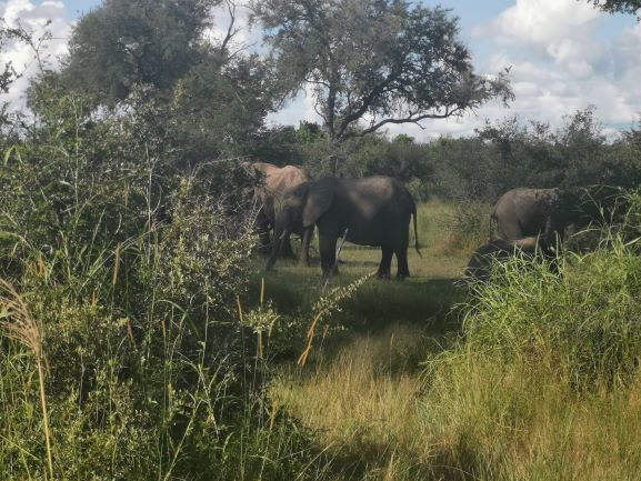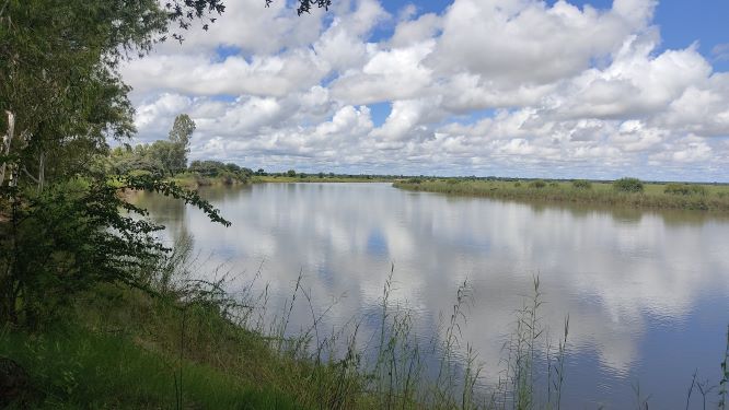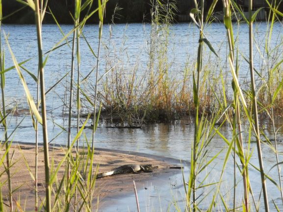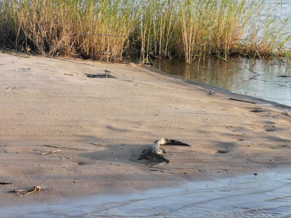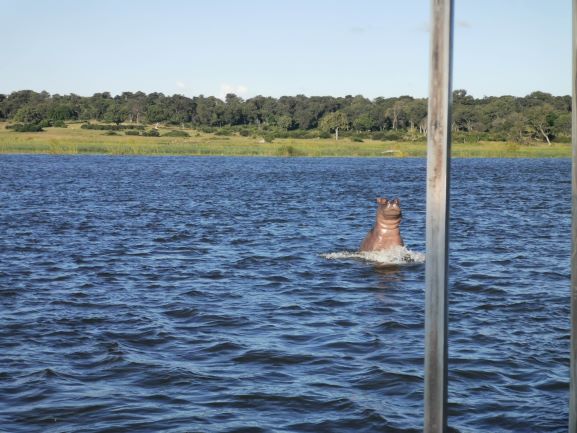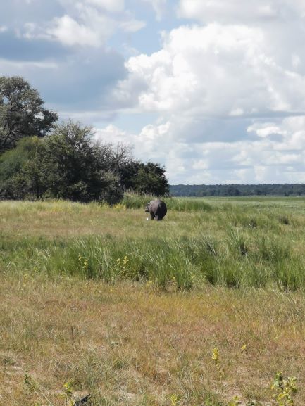 Après un copieux petit-déjeuner, nous partons en direction du Mudumu Park, les 3 familles ensemble. Malheureusement, le parc est fermé. Les pistes sont inondées par moment jusqu’à plus d’1 mètre de fond. Nous faisons donc demi-tour. Cependant comme la route principale traverse le parc, nous décidons de nous enfoncer un petit peu dans le parc sans risque en suivant les pistes qui amènent à des lodges. Nous ferons chou blanc, aucun animal croisé. Nous nous autorisons une petite dernière piste en direction de la « hippo pool ». Nos amis ne nous suivent pas avec le camping-car pour ne pas prendre de risques. Le jeu en valait la chandelle car nous sommes bien tombés sur un groupe de hippopotames baignant dans la rivière.