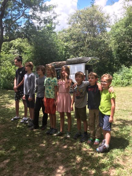 Nous passons une agréable soirée barbecue au camping. Le lendemain matin, nous démarrons plus cool, je prépare des pancakes pour satisfaire tous les gourmands. Ensuite on s’attaque à l’école pour se remettre un peu à jour. Nous prenons bien notre temps ce matin-là, du coup nous décidons d’avaler rapidement notre déjeuner sur place avant de reprendre la route.
