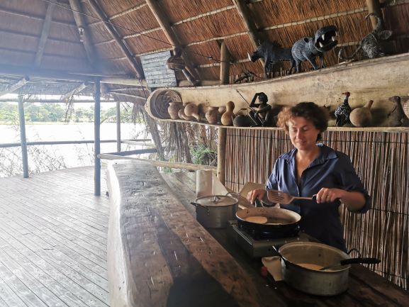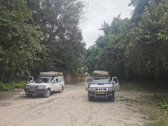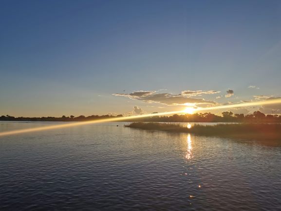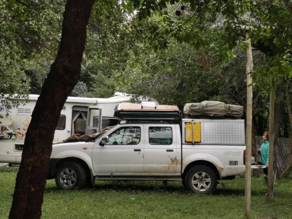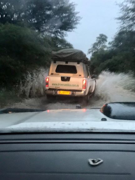 Nous arrivons en fin de journée sur Rundu, le point d’entrée de Caprivi, une ville où semble régner le bordel organisé à l’africaine. Nous nous attarderons pas, car nous avons trouvé un petit camping en retrait de la ville au bord du Zambeze. La route pour y accéder est inondée, on se paie une belle partie de 4×4 dans la boue et les flaques. On en rigole bien car nous sommes à 2 voitures, c’est plus rassurant en cas de galère. Ce soir-là, nous partageons le lieu avec un rassemblement de fervents chrétiens qui s’installent au crépuscule, préparent un grand repas près de nos tentes, chantent des chants chrétiens et prient. Le lendemain matin, nous sympathisons avec le pasteur. Celui-ci nous propose de chanter un chant rien que pour nous et même de nous dédier une prière. Quelle que soit la croyance de chacun, ce moment était extrêmement poignant et émouvant. Les africains vivent tellement la musique, la danse et la foi, qu’ils arrivent à nous « prendre aux tripes » et emporter nos cœurs.
