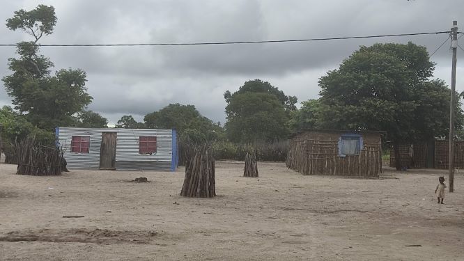 Nous roulons environ 300km sur cette grande ligne droite. Nous nous enfonçons vers une autre image de la Namibie. Nous sommes loins de ses régions désertiques, la végétation devient luxuriante, le temps plus humide et petit à petit de nombreux villages apparaissent sur la route. Nous avons l’impression de voir l’Afrique telle qu’on se l’est imaginé : des petits villages éparpillés, des cahutes faits avec les moyens du bord (du bois, de la terre, de la tole), du monde au bord de la route…