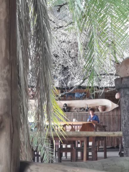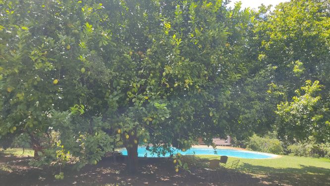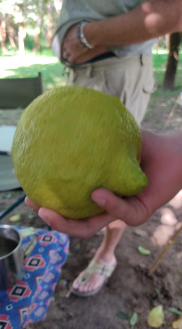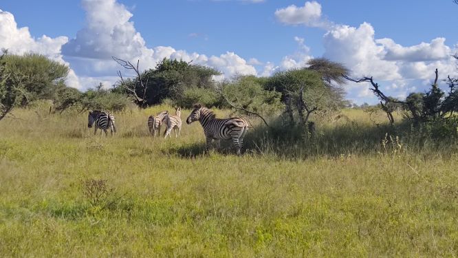 Le lendemain, nous rentrons dans la bande de Caprivi. Cette bande est longue de 450km et large de 30km, elle est à la frontière de l’Angola au nord, de la Zambie à l’ouest et du Botswana au sud. La route est plutôt mauvaise avec de gros trous au milieu de la chaussée, pas toujours faciles à anticiper sans parler quand il faut doubler et que la voie de droite est également trouées… Nous n’apprécions vraiment pas cette route droite, monotone, entourée de végétation luxuriante, parsemée de trous difficiles à éviter. Nous faisons une pause le midi dans un joli campsite qui pour quelques euros nous permet de déjeuner au bord de la piscine à l’ombre d’un magnifique citronnier.