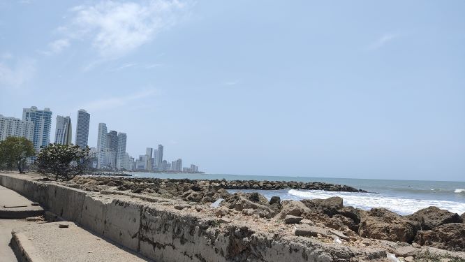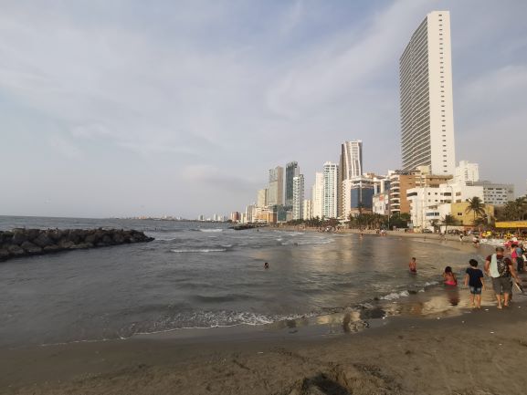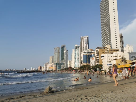 Nous arrivons à Carthagène en tout début d’après-midi après un interminable trajet de bus de 17h. Nous sommes tellement épuisés que nous nous posons à l’appartement que nous avons loué dans le quartier de Bocagrande. On l’appelle le Miami de Colombie : en gros il s’agit d’une péninsule au sud du centre-ville avec de grands buildings sur la plage.