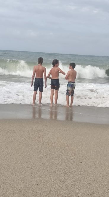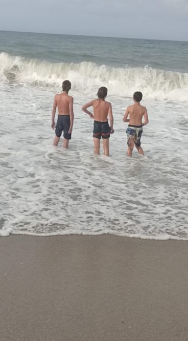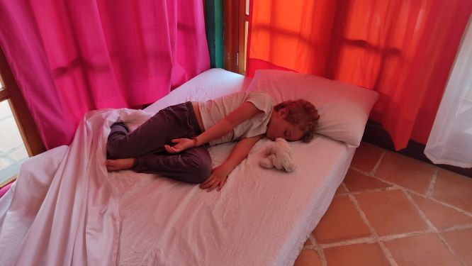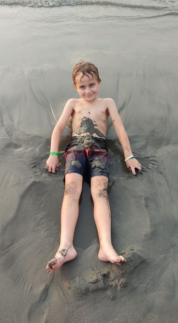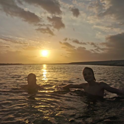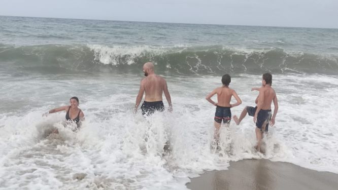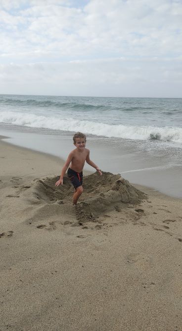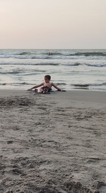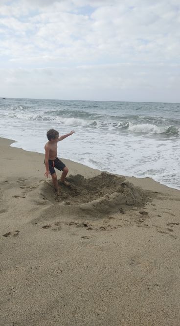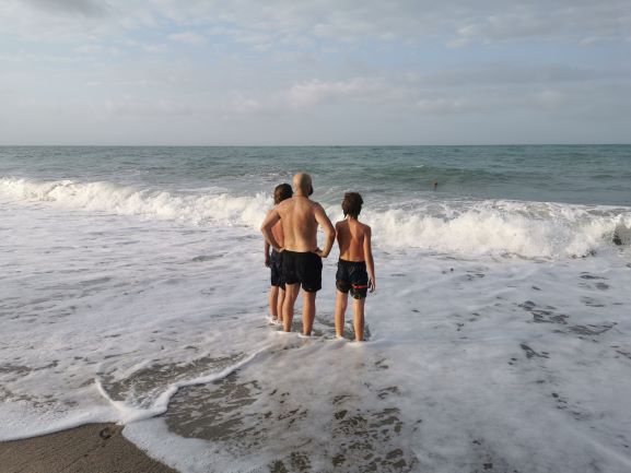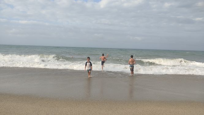 De retour à notre appartement, les enfants réclament une dernière baignade dans la mer. Nous y arrivons vers 17h15 sans savoir qu’il y avait un couvre-feu pour la plage. Les enfants ont eu le temps de faire un plouf 15 minutes. C’était sans compter sur le policier qui sifflait depuis un bon quart d’heure nos enfants depuis la plage pour leur faire comprendre qu’il fallait sortir de l’eau 🙂