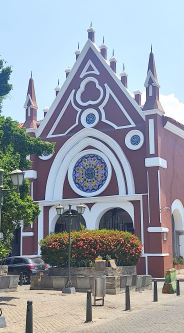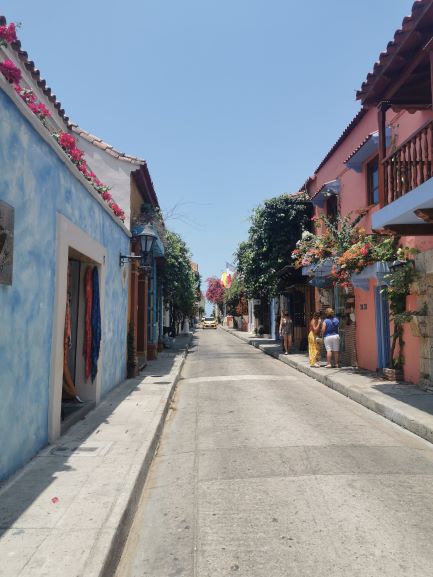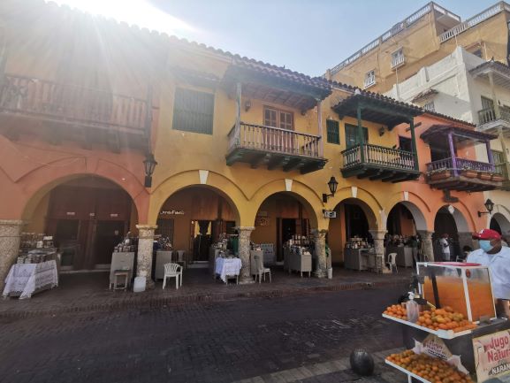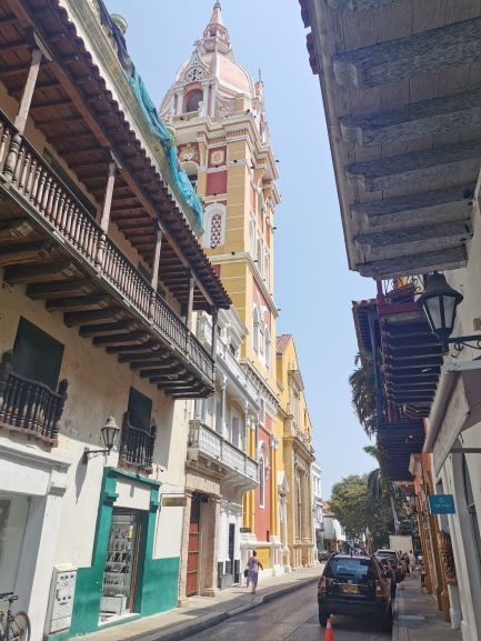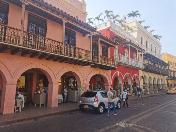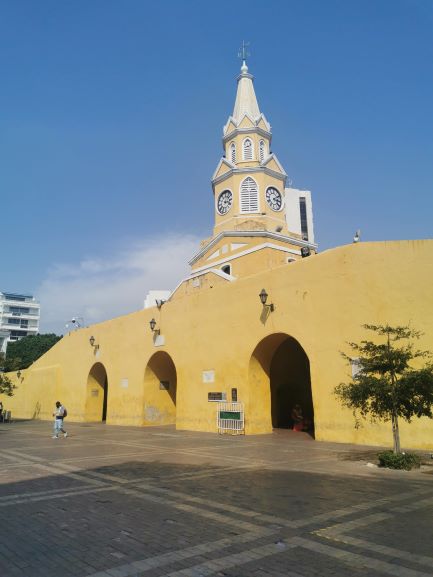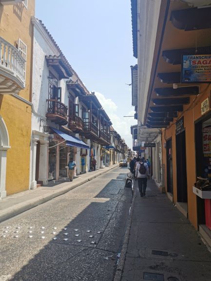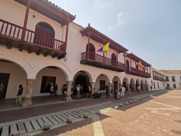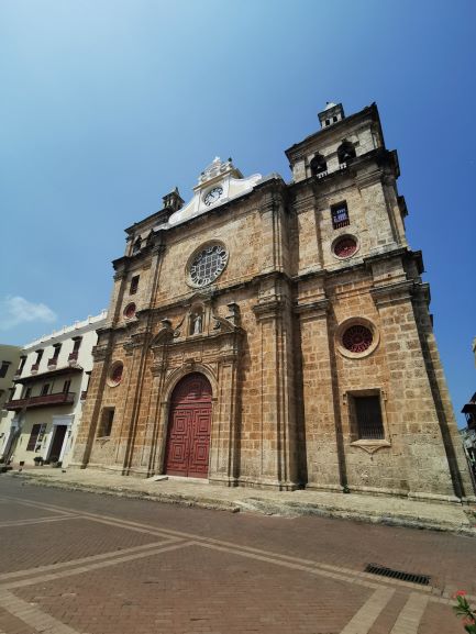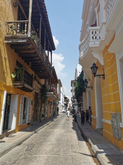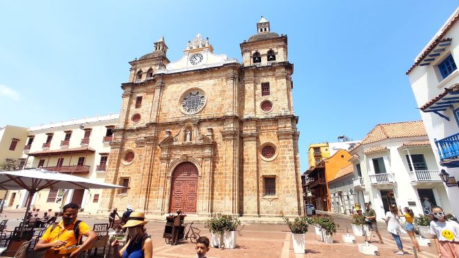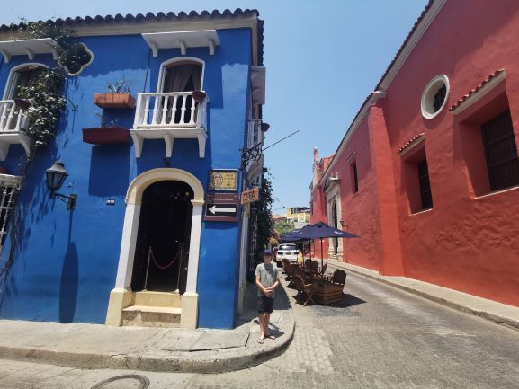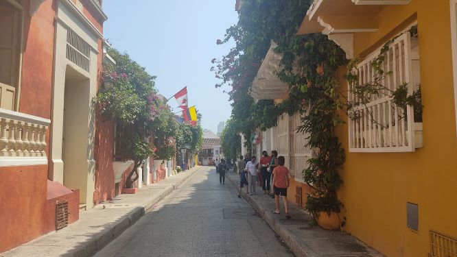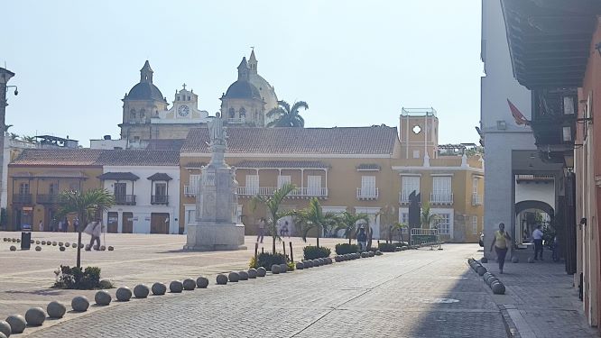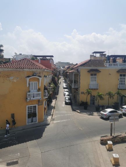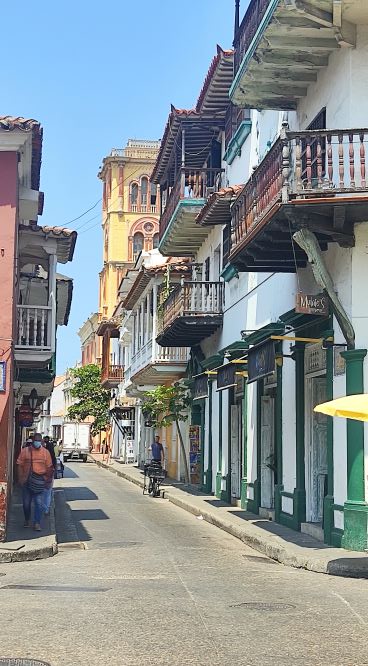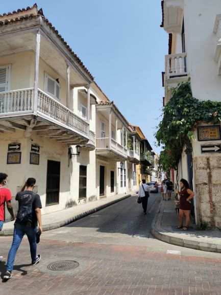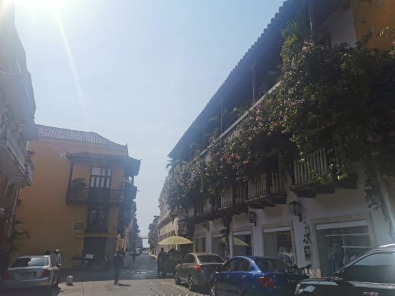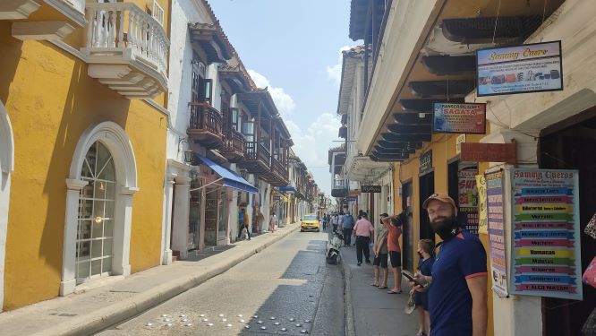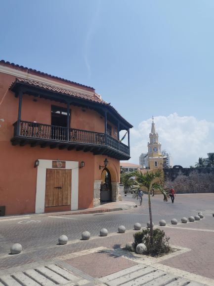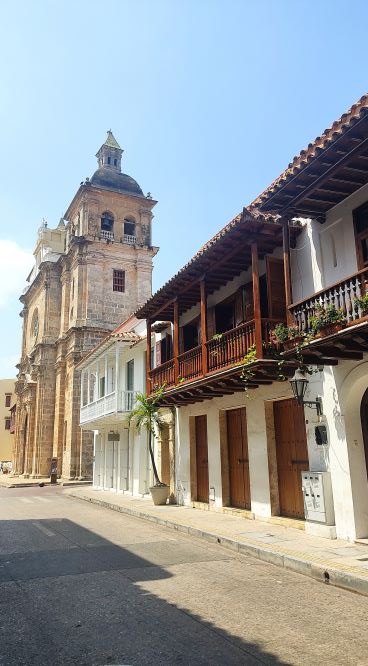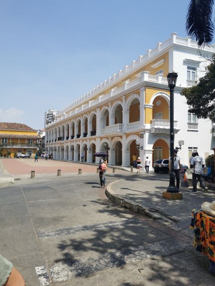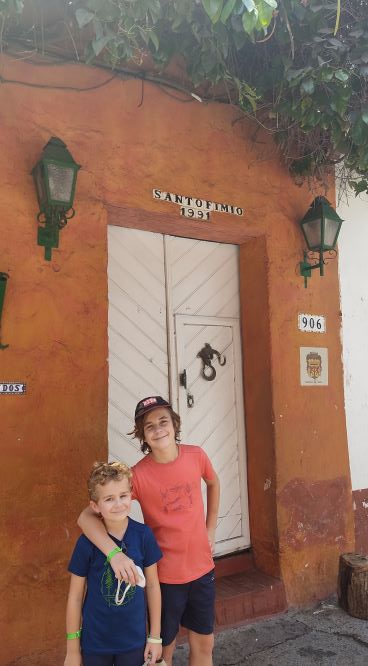 Après une bonne nuit de récupération, nous partons à la découverte du vieux Carthagène. Carthagène des Indes est connue pour ses vues à couper le souffle notamment ses fortifications historiques, construites à l’époque coloniale espagnole pour la protéger des nombreuses attaques de pirates et de corsaires venus d’Europe. La ville est la forteresse la plus infranchissable d’Amérique du sud et des Caraïbes. Elle doit son nom aux conquistadores espagnols qui la trouvait ressemblant à la ville de Carthagène en Espagne, et croyant qu’ils étaient en Inde l’ont nommé « Carthagène des Indes ». Elle est caractérisée par des bâtiments de style colonial colorés et des rues pavées. Chaque maison a ses fenêtres grillagées au rez de chaussée et un balcon à l’étage où les carthagénois vivaient principalement pour se protéger des pillards. Il y a également de très belles portes d’entrée cossues en bois avec chacune son heurtoir avec une signification précise. Le lézard signifiait que l’on faisait partie ou que l’on descendait de la famille royale. Le lion signifiait que l’on faisait partie de l’armée ou de l’Église, et était presque toujours destiné aux portes des églises. Le poisson ou les figures marines signifiaient que l’on était commerçant. De la main, on disait que c’était la main de la Vierge de Fátima, par conséquent, c’était une famille religieuse.