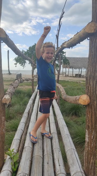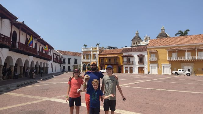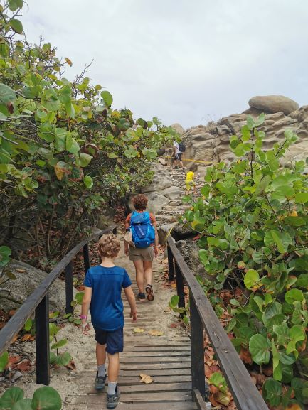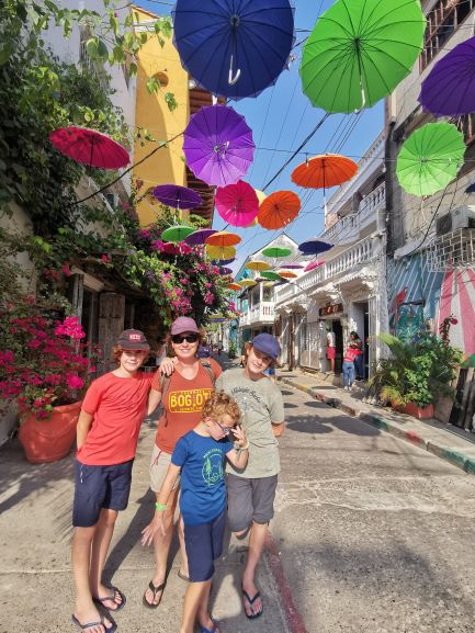 Le lendemain, nous prenons du temps le matin pour préparer la suite du voyage. Les enfants font école, et je passe encore quelques heures pour arriver à acheter nos billets d’avion pour Medellin dans quelques jours. C’est en effet un peu galère de payer des vols internes avec une carte bleue étrangère…